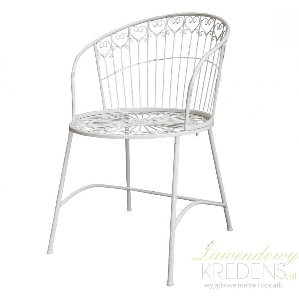 Metalowe krzesło prowansalskie Chic Antique Bistro ma ciekawy design połączony z antycznymi akcentami.