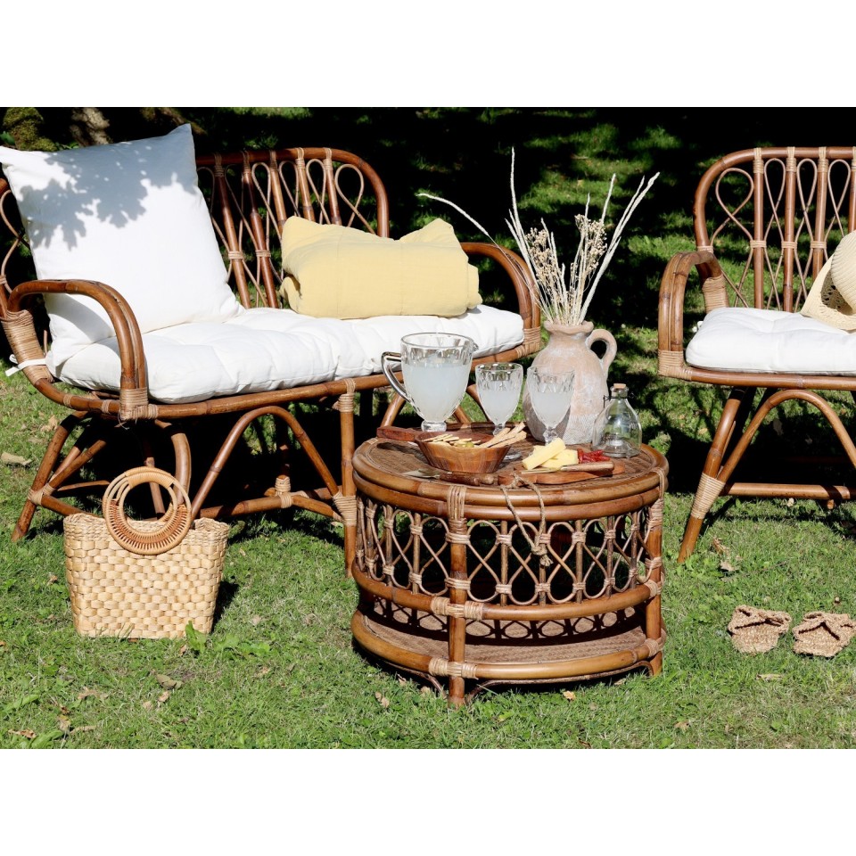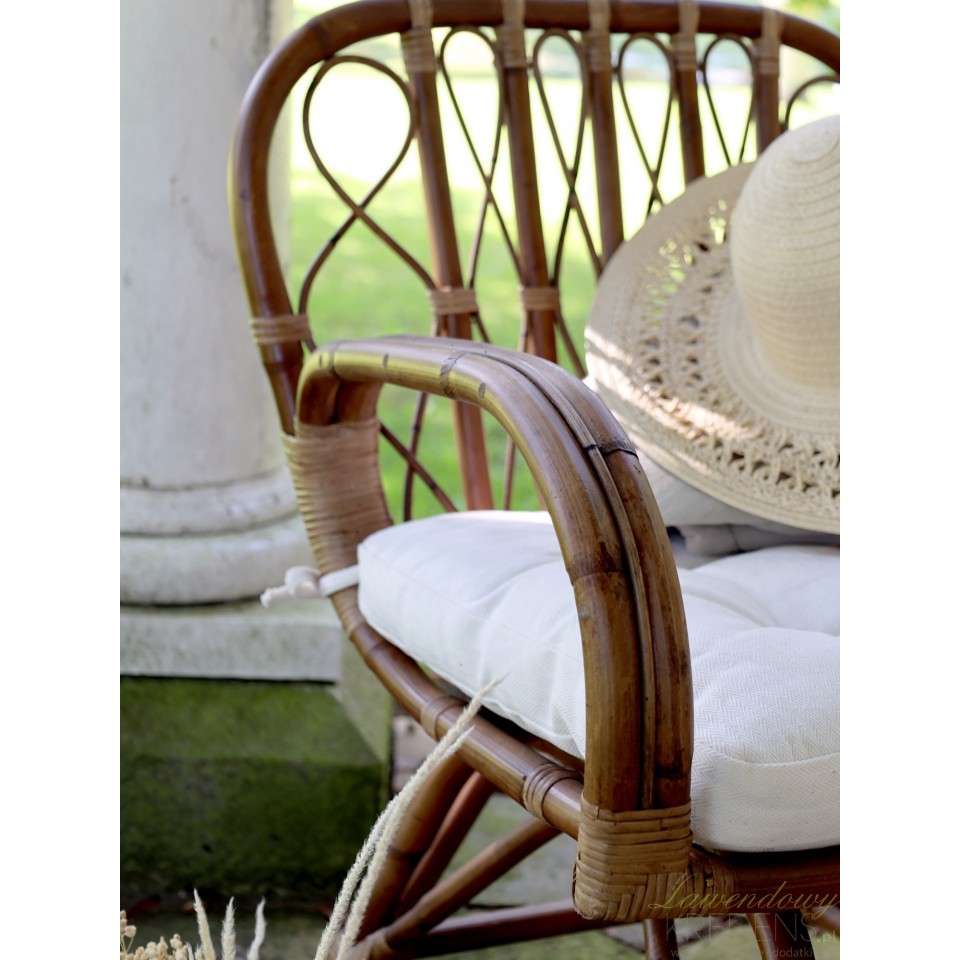 Ciepłe odcienie tego naturalnie wykończonego krzesła sprawiają, że jest idealnym dodatkiem do każdego salonu, do sypialni i na taras. Wysokiej jakości wykonanie, brązowa konstrukcja i miękka, kremowa poducha sprawiają, że to pełne wdzięku francuskie krzesło będzie Twoim ulubionym miejscem do spędzania wolnego czasu, którego latem nie brakuje. Uwielbiamy rattanowe krzesła z zapadającym się kształt ramion i siedzenia oraz ich profesjonalnie wykończone detale. Zamów rattanowe meble od Chic Antique już teraz!