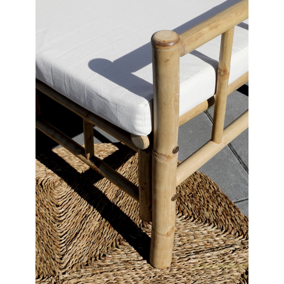 Sofa bambusowa Lyon Chic Antique to elegancki wybór dla osób ceniących naturalne materiały i minimalistyczny design. Jej subtelna konstrukcja z bambusowych kołków w połączeniu z kremową poduchą tworzy harmonijną całość, która wpasuje się w różnorodne aranżacje wnętrz.