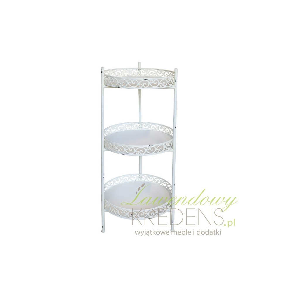 Regał wykonano w całości z metalu, co zapewnia mu trwałość i stabilność. Dzięki trzem półkom o okrągłym kształcie i odstępie 31 cm między nimi, idealnie sprawdzi się jako kwietnik na doniczki z ziołami, roślinami domowymi czy dekoracyjne wazony. Wysokość całkowita 86 cm, a szerokość i głębokość 35 cm czynią go poręcznym rozwiązaniem nawet do mniejszych przestrzeni – kącika w salonie, oranżerii, balkonu czy przedpokoju. Mebel waży zaledwie 3,2 kg, co ułatwia jego przestawianie i aranżację zgodnie z potrzebą chwili.