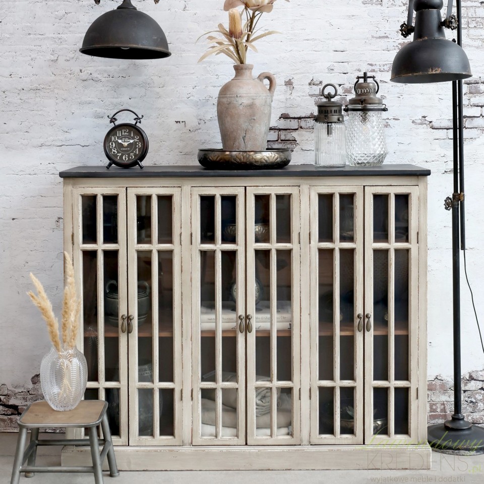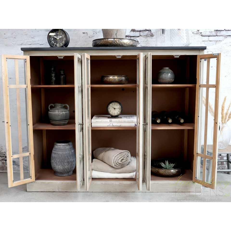 Proponujemy firmę Chic Antique i ich najnowszy mebel: komoda prowansalska w postarzanej stylizacji, z mocnym, czarnym blatem. Dodatkowym atutem tego mebla są nietypowo rozłożone drzwiczki, których jest aż sześć. Takich mebli szukasz od dawna!