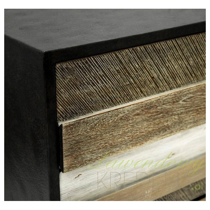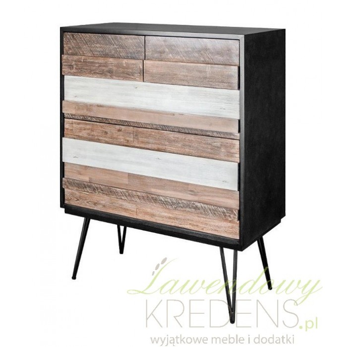 Meble Livin Hill są projektowane i tworzone według najwyższych standardów oraz najnowszych trendów w urządzaniu wnętrz. Komoda Adesso to przykład praktycznego mebla, który posiada pięć szuflad wykonanych z desek w różnych odcieniach brązu. Komoda jest ustawiona na czterech podwójnych, metalowych nogach, które podobnie tak jak korpus mebla mają czarny kolor. Komoda Livin Hill jest przykładnym meblem, gotowym do wykorzastania w każdym wnętrzu.