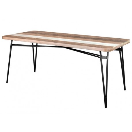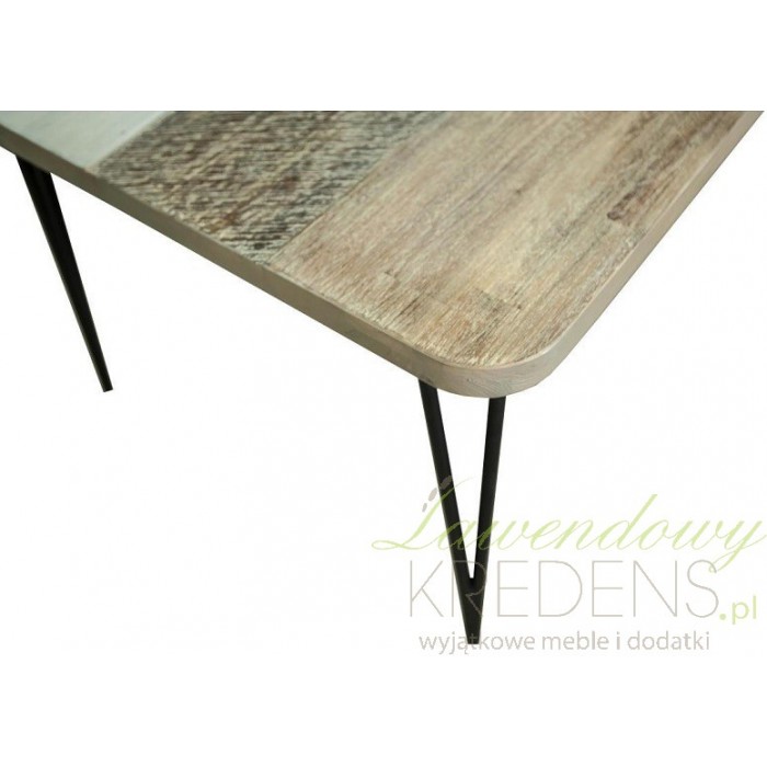 Stół Adesso to mebel o prostej budowie, ale o oryginalnym wykończeniu. Podłużny stół Livin Hill ma nogi wykonane z metalowych elementów i blat wyglądający jak zbite ze sobą, nieoszlifowane deski. Ten mebel będzie wyglądał najlepiej w otoczeniu ciemnych krzeseł i innych mebli z kolekcji Adesso. Meble Livin Hill są pomysłowym rozwiązaniem zaaranżowania salonu lub jadalni.