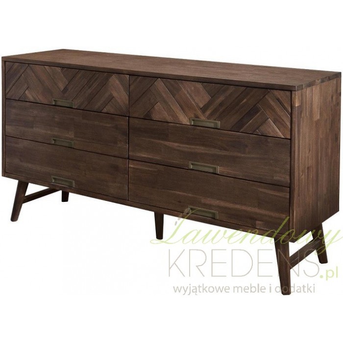 Meble Livin Hill to cudowny wygląd i doskonała jakośc wykonania. Komoda Ashton wyróżnia się przepięknym wzorem w jodełkę i głębokim, brązowym kolorem. Komoda Livin Hill wykonana jest z trwałego drewna akacjowego i posiada sześć dużych szuflad na bieliznę czy ubrania. To doskonały pomysł na niepowtarzalny i oryginalny prezent