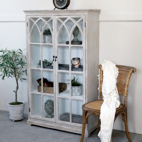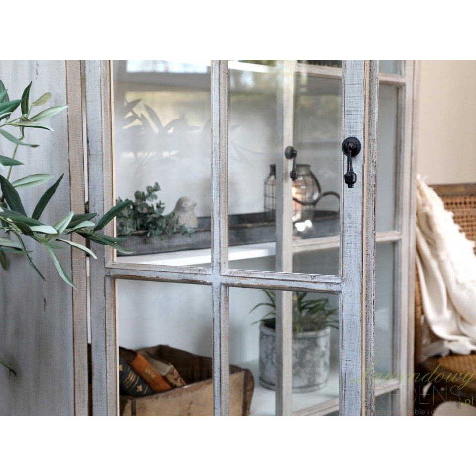 Witryna prowansalska Chic Antique w kolorze szarobeżowym to połączenie funkcjonalności, elegancji i subtelnego uroku, który wprowadza do wnętrza wyjątkowy klimat. Jej design łączy wpływy stylu skandynawskiego, prowansalskiego i shabby chic, co czyni ją wszechstronnym dodatkiem do wielu aranżacji.