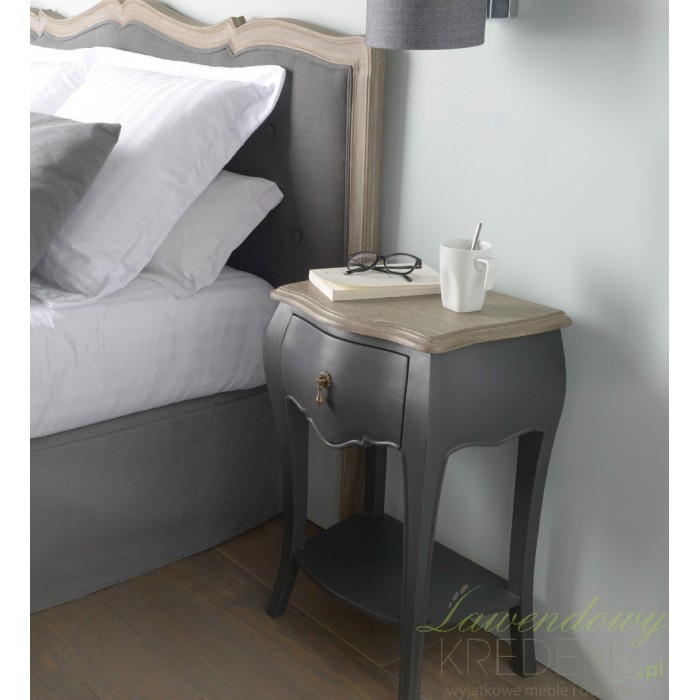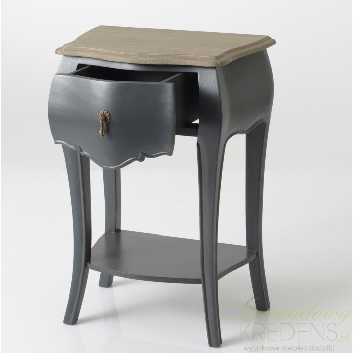 Elegancki model z postarzanym wykończeniem – tak w kilku słowach można najprościej określić stolik nocny prowansalski czarny Murani.