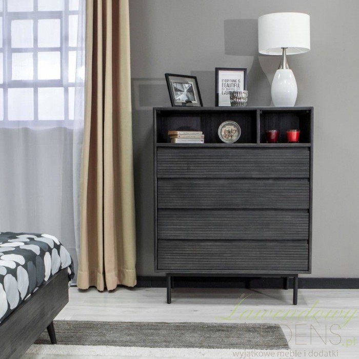 Komoda Capella od marki Livin Hill to połączenie prostej formy z grafitowym wybarwieniem i frezowanymi szufladami.