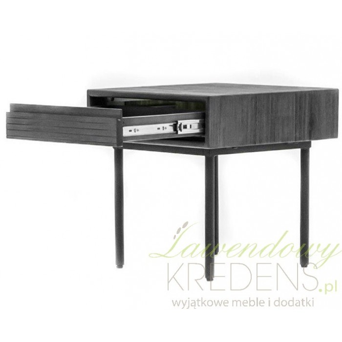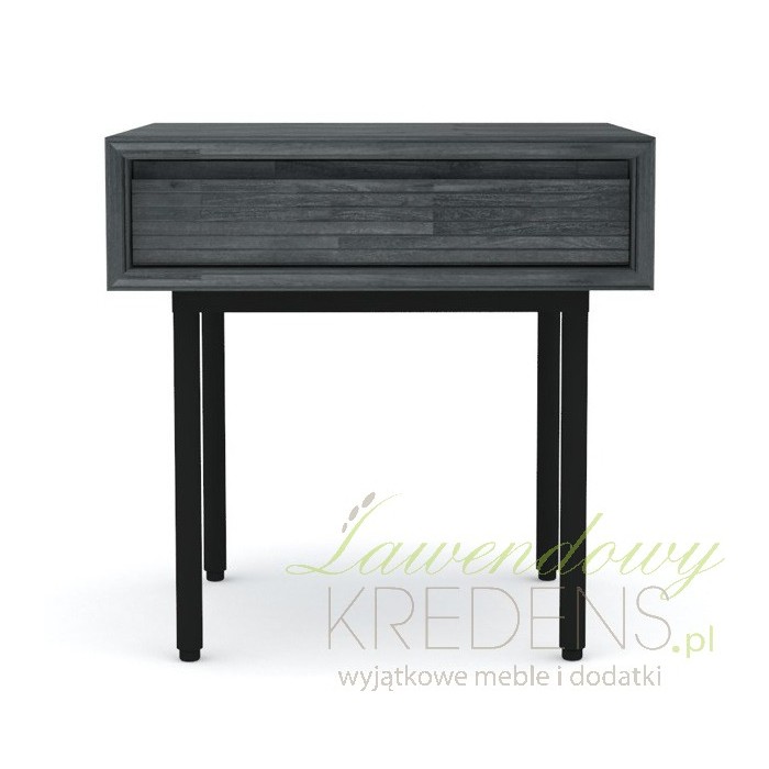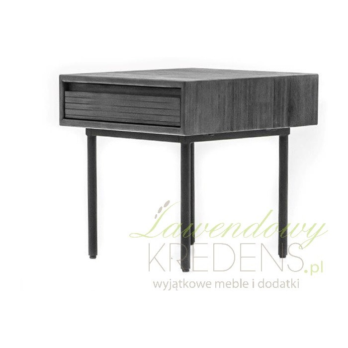 Stolik nocny Capella został wyposażony w jedną szufladę z solidnymi metalowymi prowadnicami. Szuflada posiada łatwy w użytkowaniu, subtelny frezowany uchwyt. Piękny odcein szarości drewna akacjowego podkreślają czarne metalowe nóżki. Stolik nocny Livin Hill to zdecydowanie mebel z charakterem.