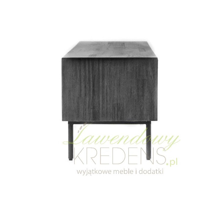 Podłużna komoda Capella z kolekcji mebli Livin Hill to mebel wykonany z drewna w ciemnym kolorze z frezowanymi uchwytami i metalowymi nogami.