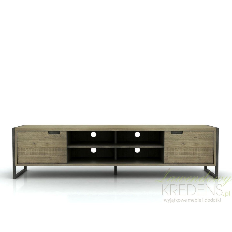 Komoda RTV od marki Livin Hill to mebel o bardzo prostych kształtach, ciemnej kolorystyce wykonany z drewna akacjowego i metalu.