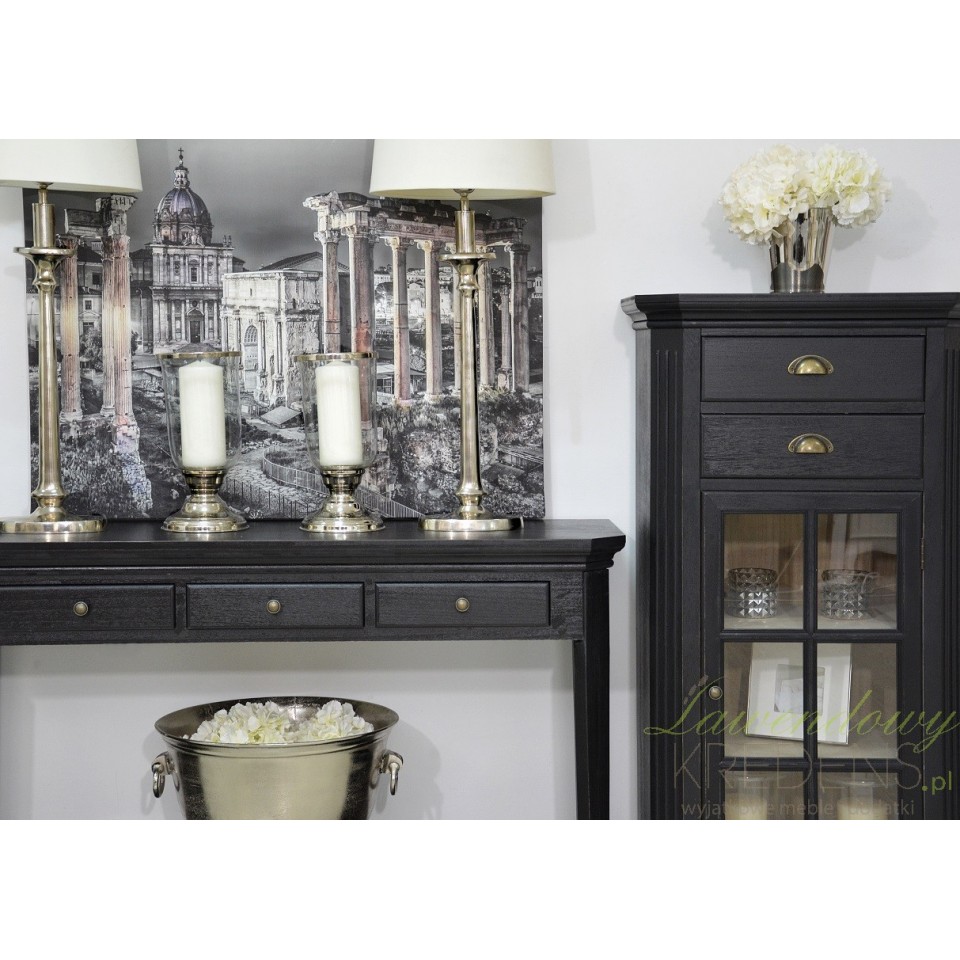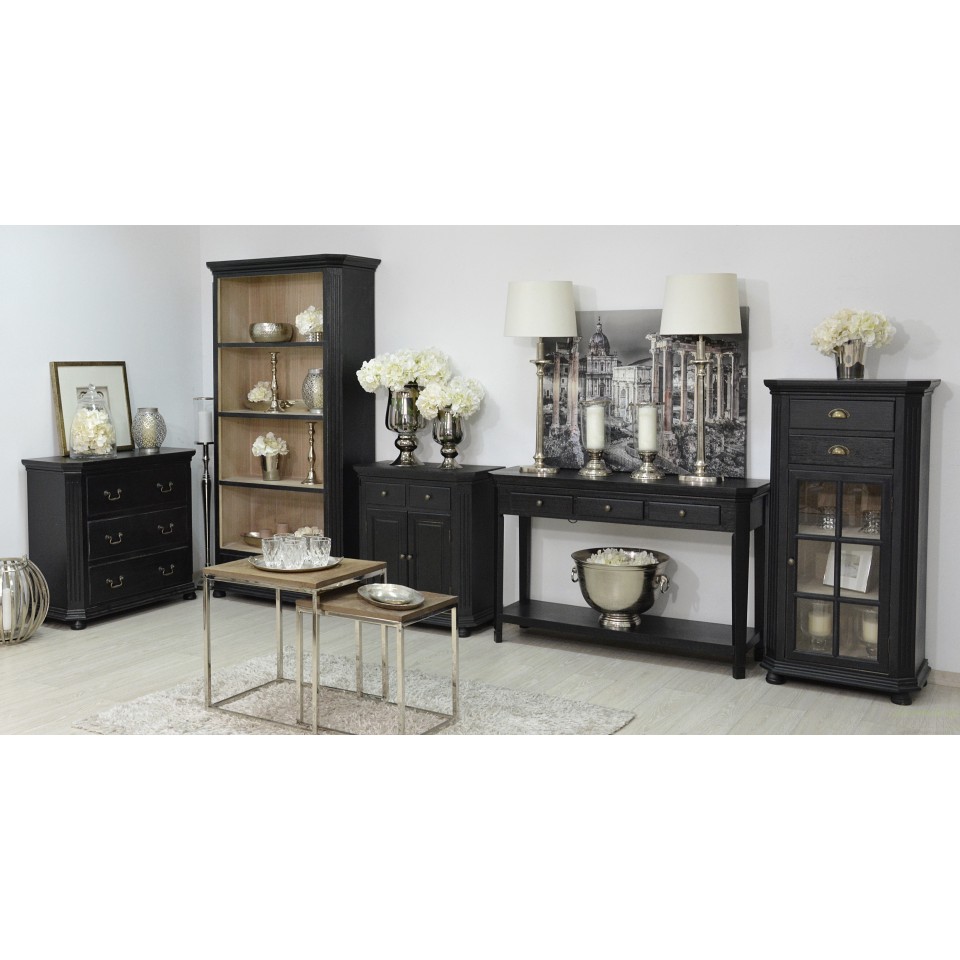 Widziałeś już mebel doskonały? Oto on - czarna witryna Cesena w stylu prowansalskim Livin Hill! Zainspirowana kolonialną estetyką jest niebywale szlachetnym meblem, który nie umknie uwadze miłośnikom doskonałej organizacji. Witryna w kolorze czarnym, zaprojektowana została z myślą o eleganckich przestrzeniach, ma dużo miejsca na książki, przedmioty kolekcjonerskie i nie tylko. Skomplikowane żłobienia na bokach mebla są pięknie rzeźbione ręcznie - to znak rozpoznawczy tej serii. Czarne meble prowansalskie to ponadczasowe klasyki!