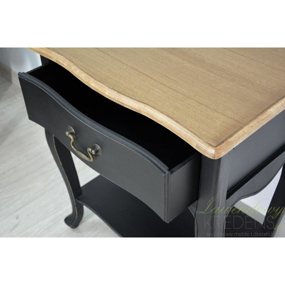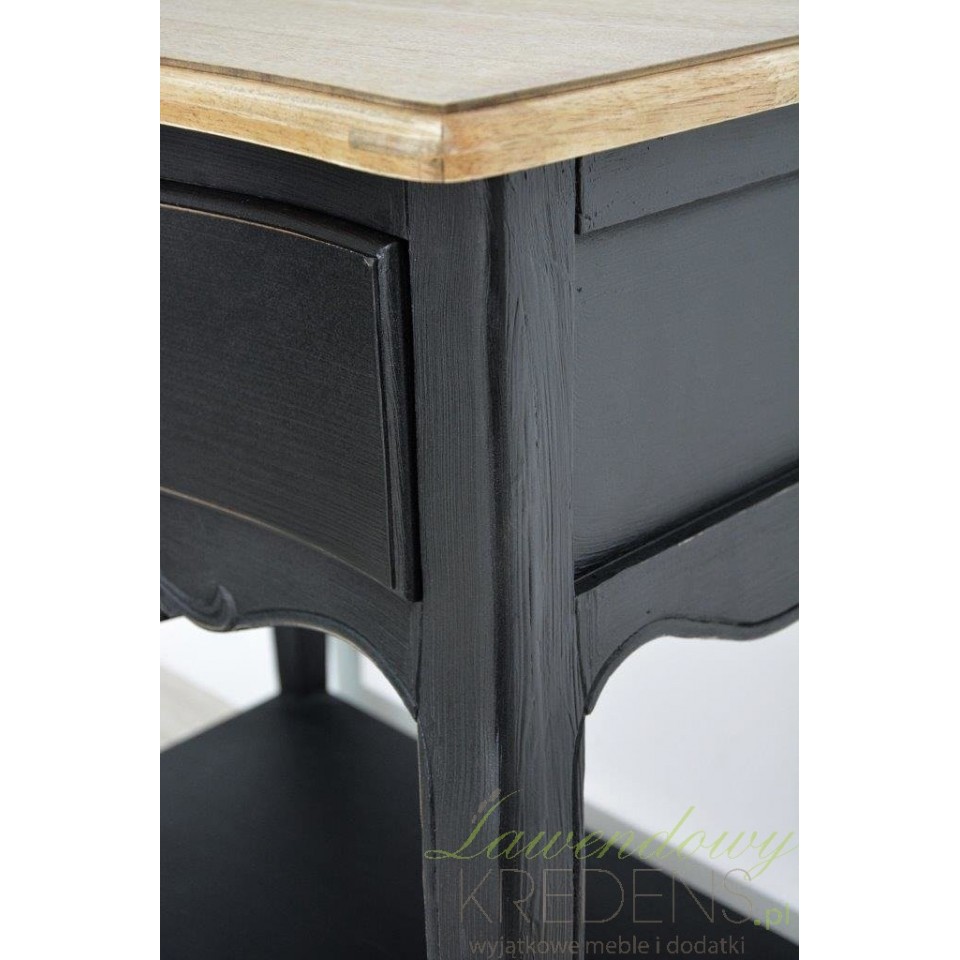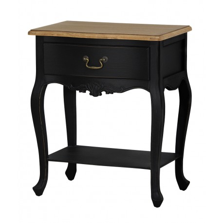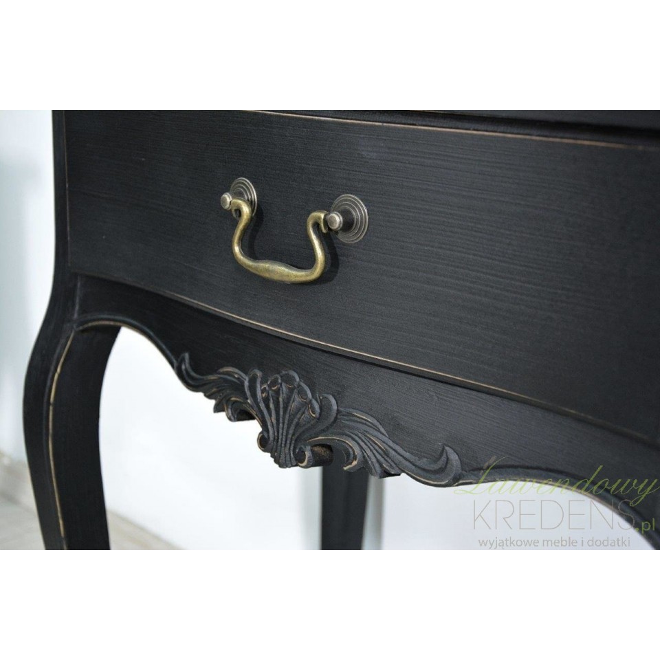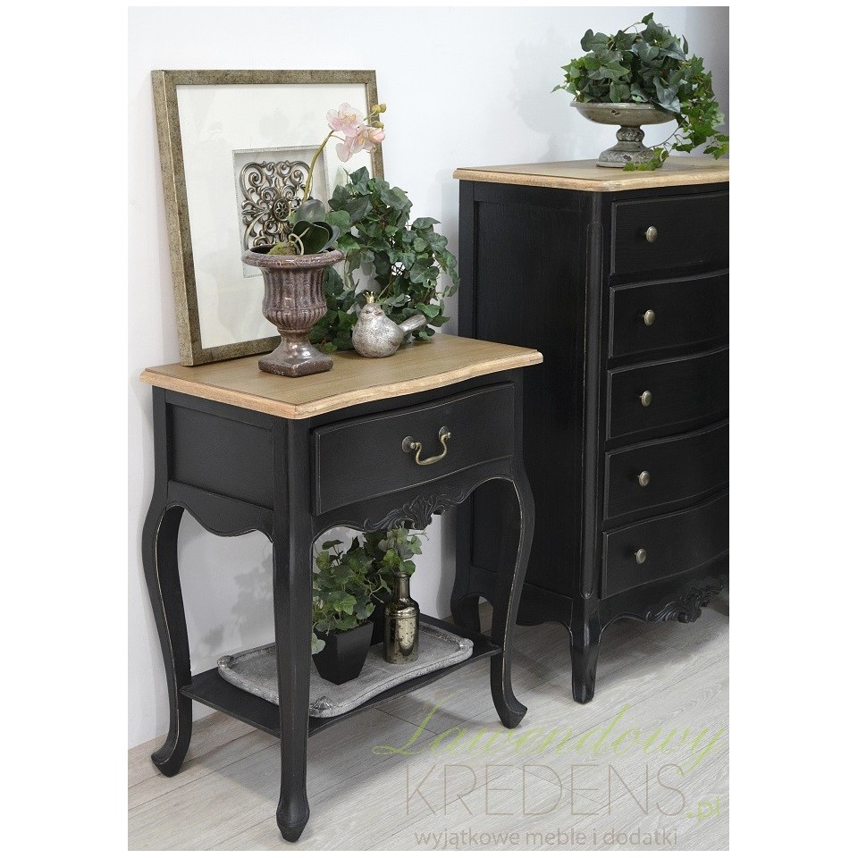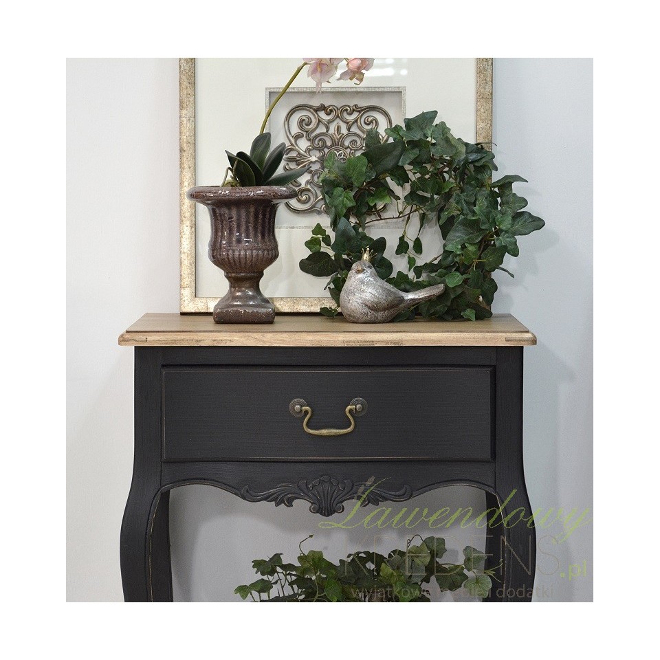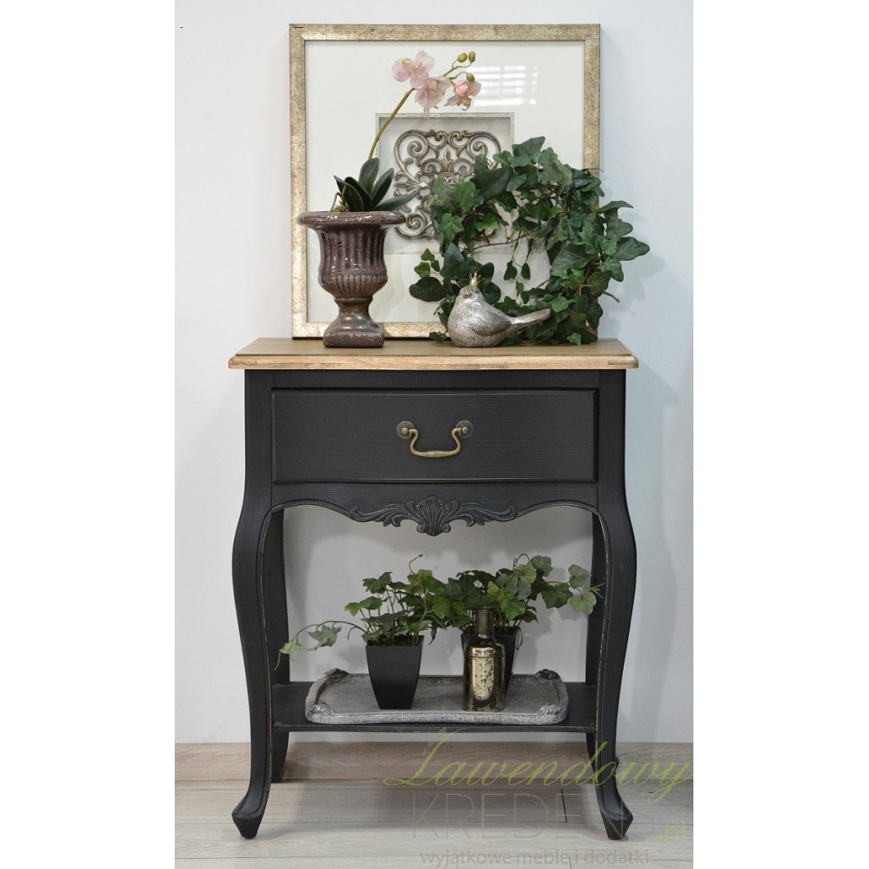 Szafka Sorrento w stylu prowansalskim posiada półkę i frezowaną szufladkę z poręcznym uchywtem w kolorze starego złota. Możliwości tego mebla przemawiają za jego wykorzystaniem w salonach, sypialniach i nie tylko. Czarne meble prowansalskie o rzeźbionych i opływowych krawędziach i matowym wykończeniu pasują do wielu eleganckich aranżacji. Meble Livin Hill od polskiej marki sprawdzą się w każdym domu!