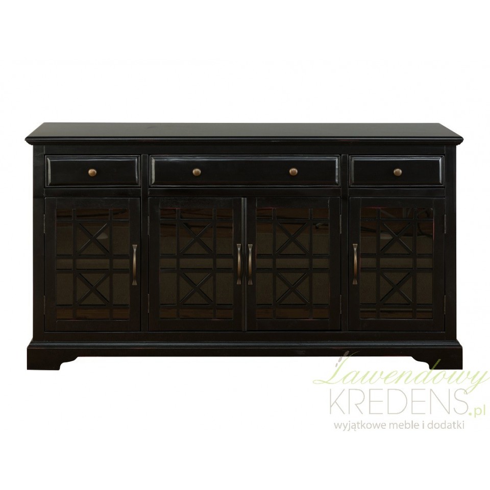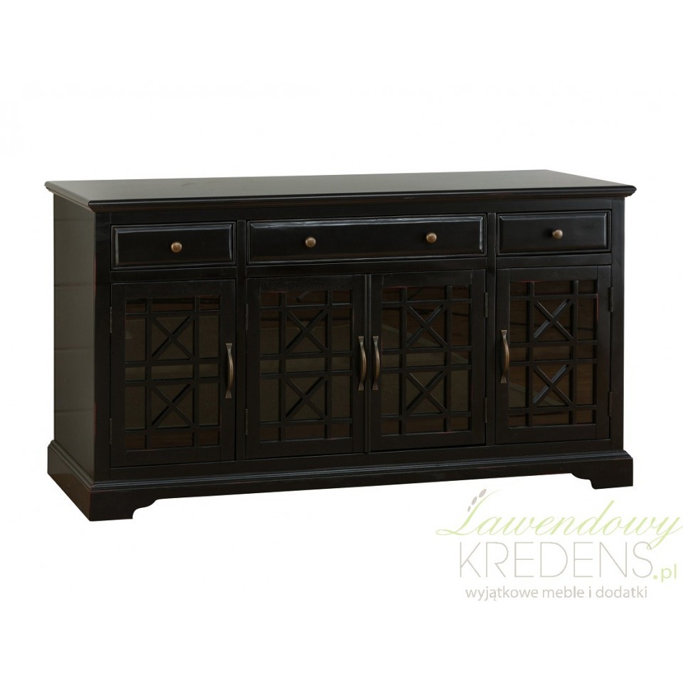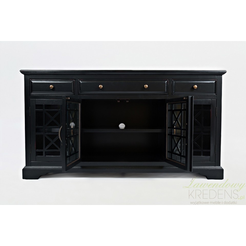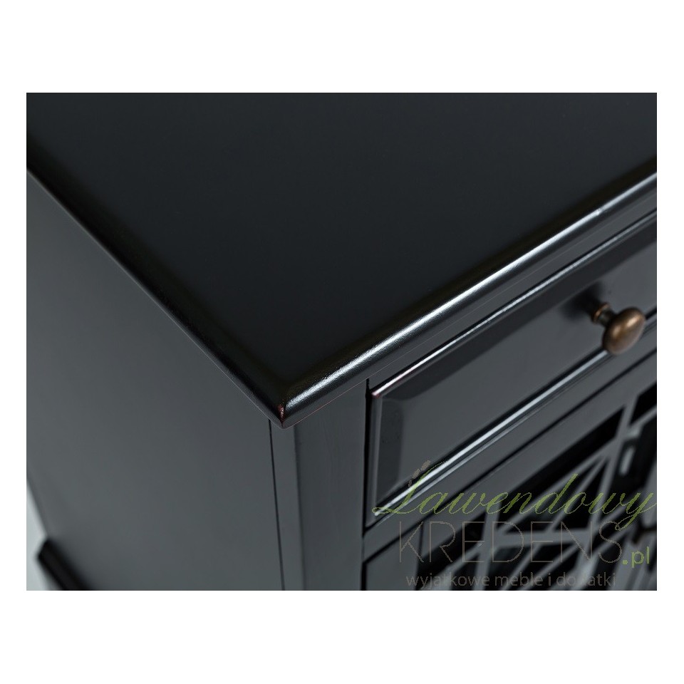 Meble Avola - jedne z długowiecznych mebli drewnianych, dostępne w atrajcyjnych wersjach kolorystycznych. Czarna komoda Avola Antique Black jak wskazuje jej nazwa jest postarzana, co najbardziej widać w miejscach frezowania szuflad. Komoda wyposażona jest w przeszklone drzwi z szprosami dzielącymi je na małe okienka. Meble Livin Hill o naturalnym, antycznym wyglądzie pasują do wnętrz francuskich, prowansalskich i retro.
