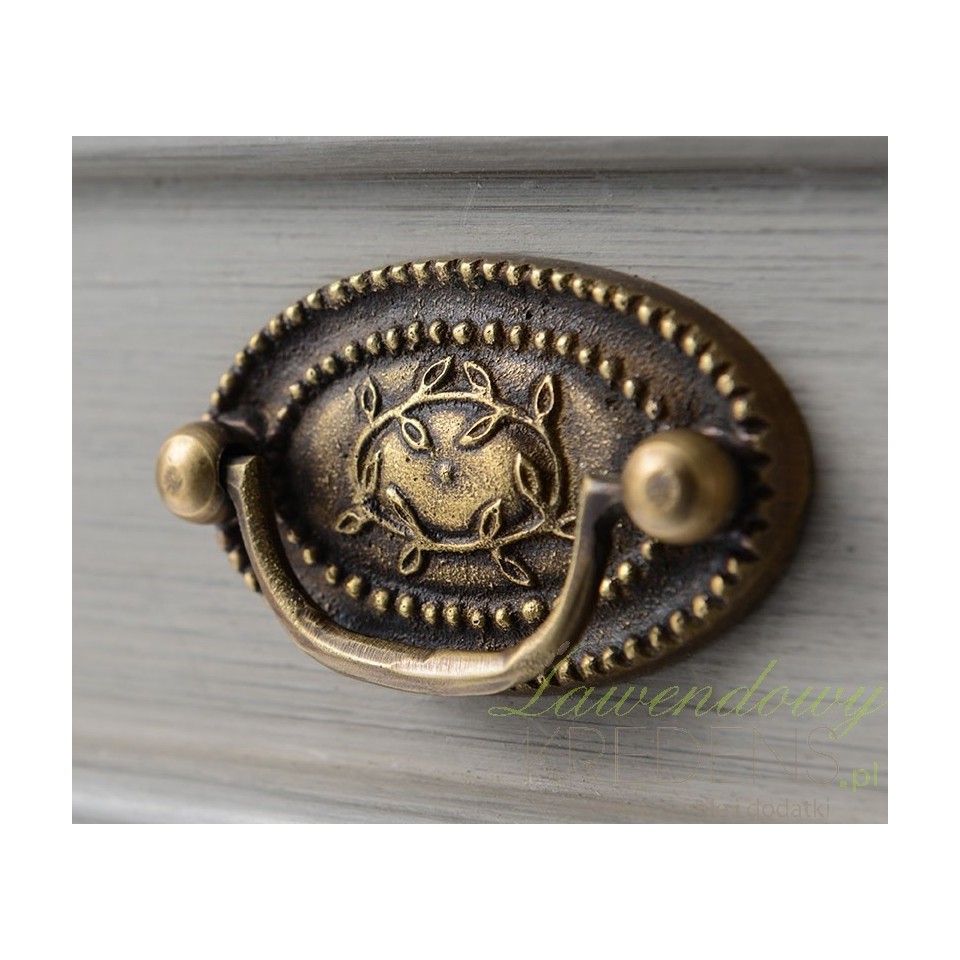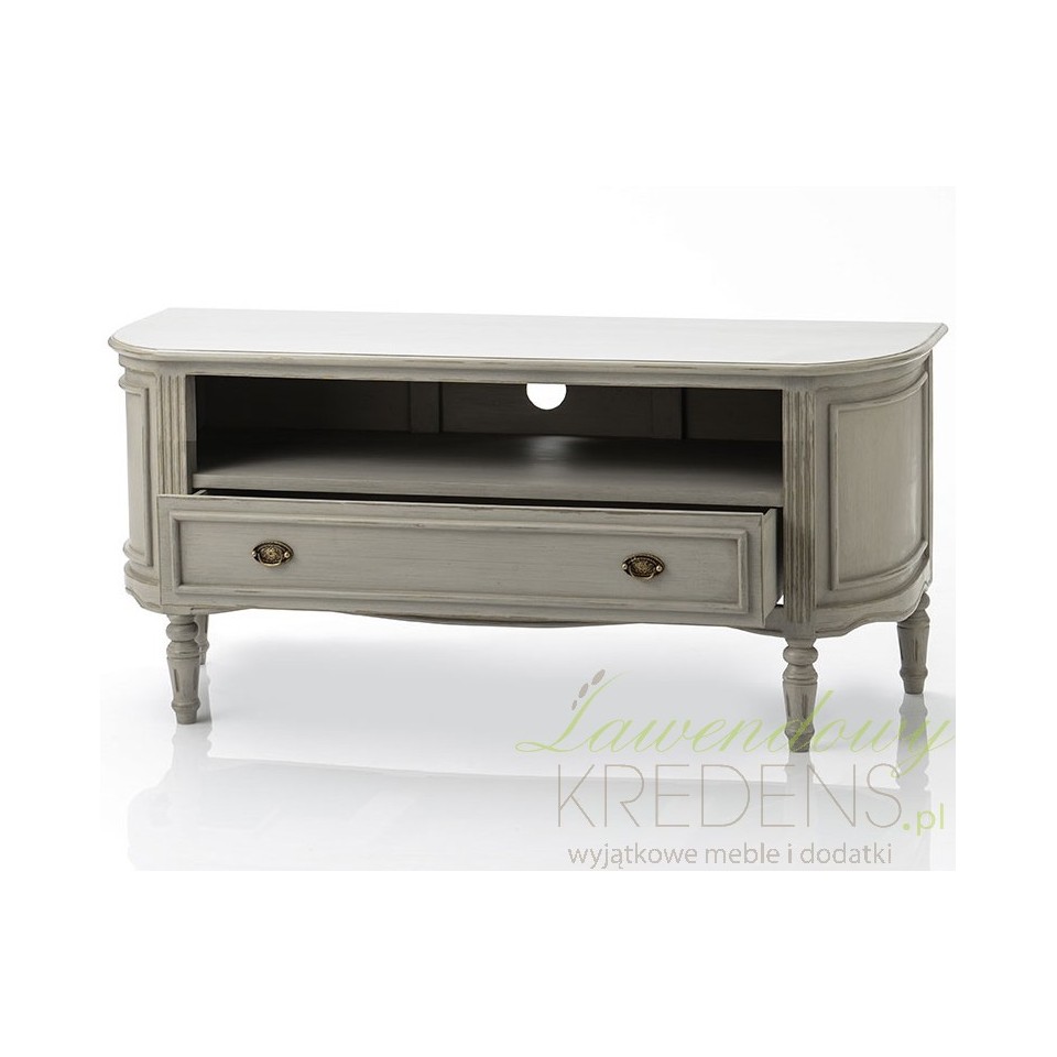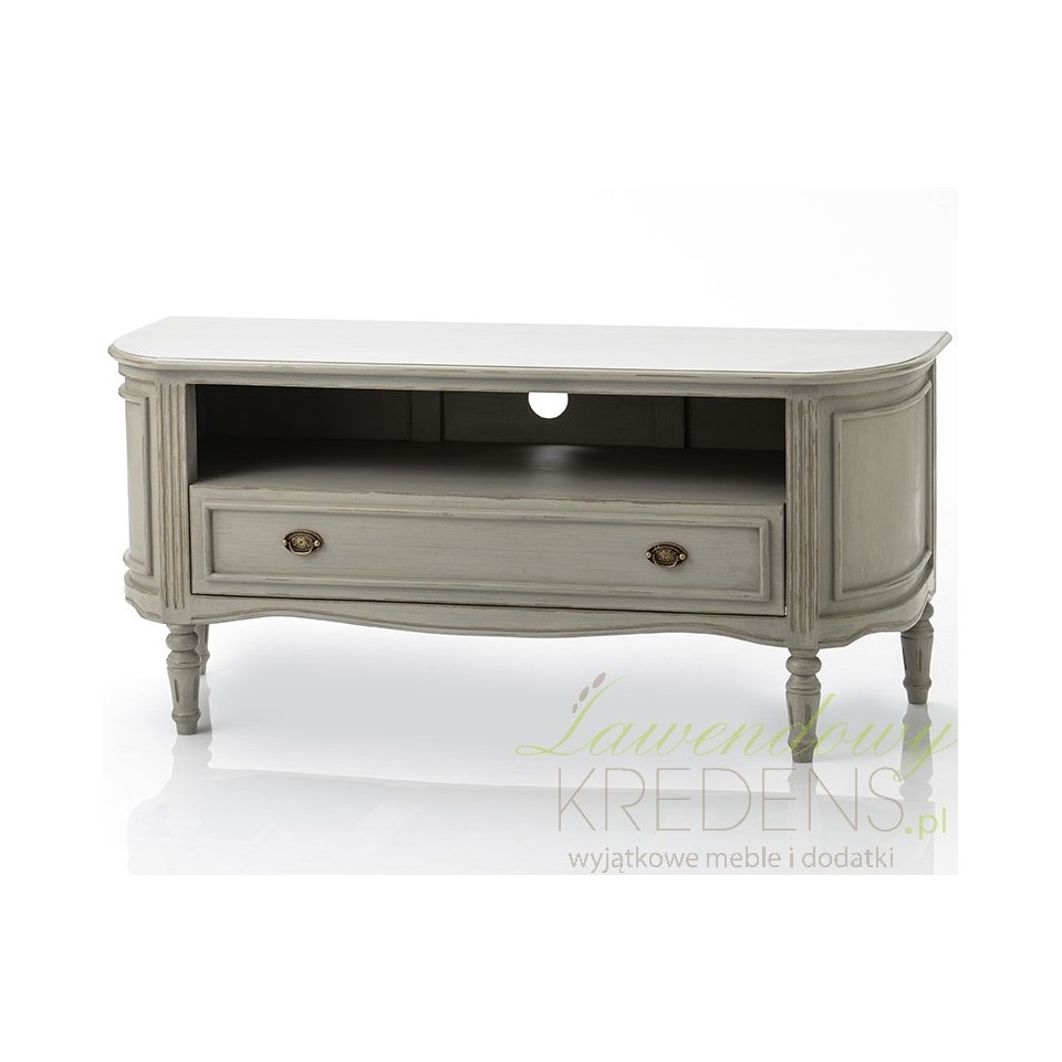 Komoda RTV w stylu francuskim ma szary kolor połączony z wysokiej jakości uchwytami w kolorze brązowym. Dzięki zachowanemu umiarowi w designie, mebel ten uzupełni wnętrze zarówno w tradycyjnych domach, jak i tych bardziej awangardowych. Komoda francuska jest praktyczna, a jej pojemne wnętrze pozwoli na organizację różnych przedmiotów w przemyślany sposób. Wysokiej jakości materiały stoją za ponadprzeciętną jakością, która niewątpliwie wyróżnia konsole w stylu francuskim z naszego sklepu.