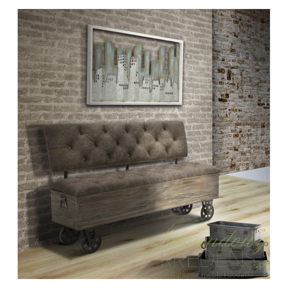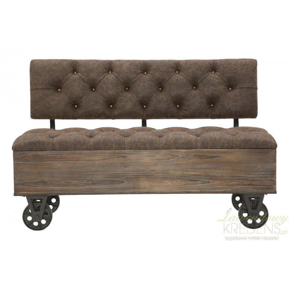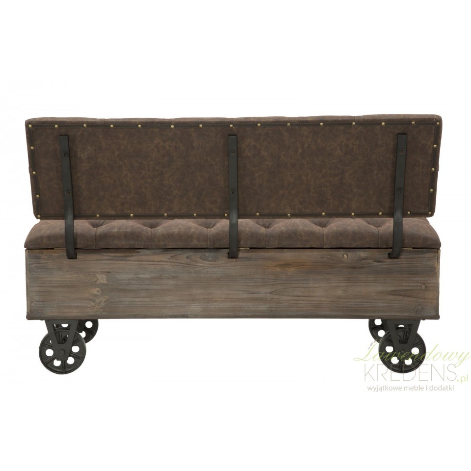 Największym atutem tej loftowej ławki jest jej efektowny wygląd, za który odpowiada eleganckie połączenie ekoskóry z drewnem. Ławka loftowa została w pomysłowy sposób uzupełniona o metalowe kółka zamiast tradycyjnych nóg oraz pojemny schowek wewnątrz. Siedzisko oraz oparcie są pikowane. Wyposaż swój dom w piękne meble od Mauro Ferretti, dzięki którym w Twoim otoczeniu zapanuje ład i fantastyczna atmosfera.
