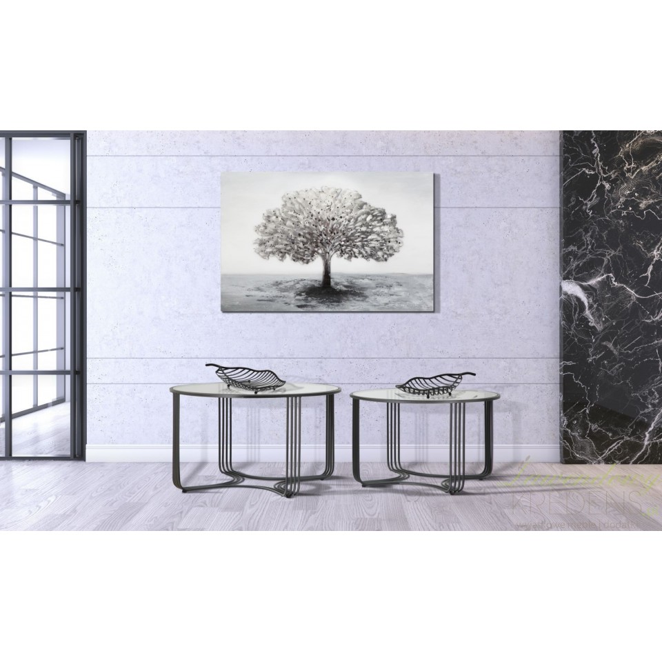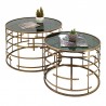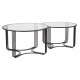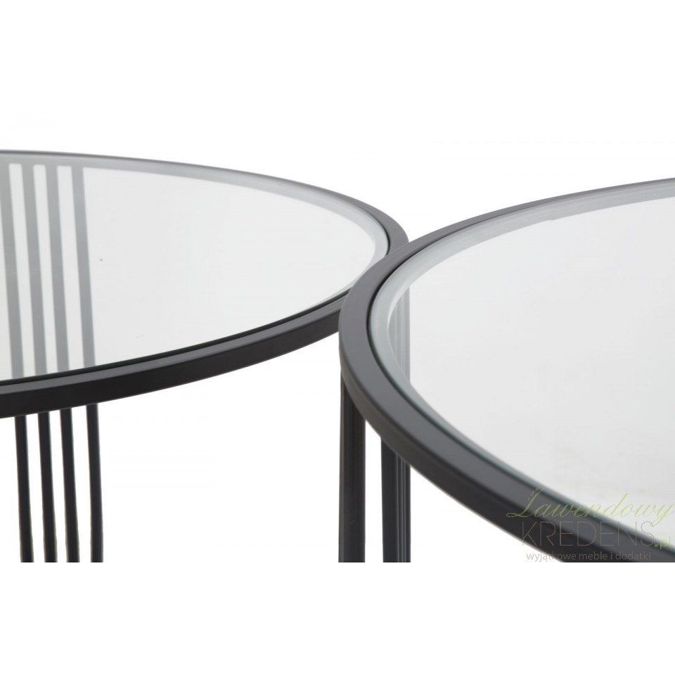 Dwa stoliki kawowe z okrągłymi blatami ze szkła to propozycja dla osób stawiających na proste i eleganckie formy, które pozwalają na dostosowanie mebli do wymagań aranżacyjnych każdego wnętrza.