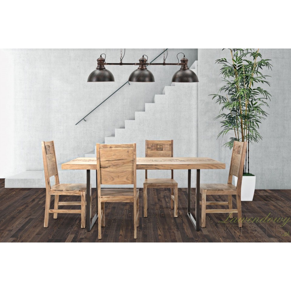Otaczanie się meblami z drewna to rozwiązanie, które dostarczy Ci wielu przyjemnych bodźców wizualnych. Do jadalni proponujemy stół loftowy z kolekcji Mumbai, dzięki któremu cała rodzina będzie zaczynała dzień w dobrym nastroju. Stół loft ma niezaprzeczalnie bardzo prostą konstrukcję, którą tworzą grube nogi stalowe i prostokątny blat z drewna akacji nilowej o długości ponad 170 centymetrów! Meble loft z kolekcji Mumbai od Mauro Ferretti możesz urozmaicić za pomocą dekoracji takich jak na przykład wazony z kwiatami.