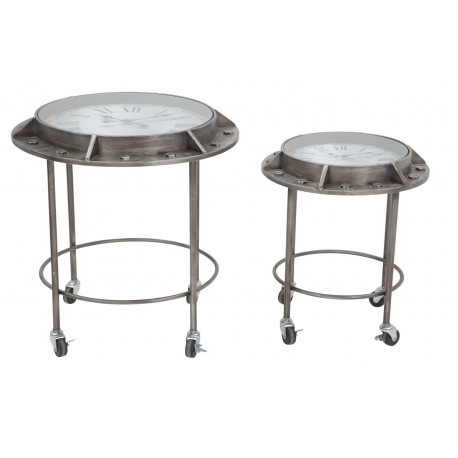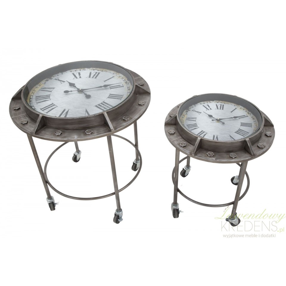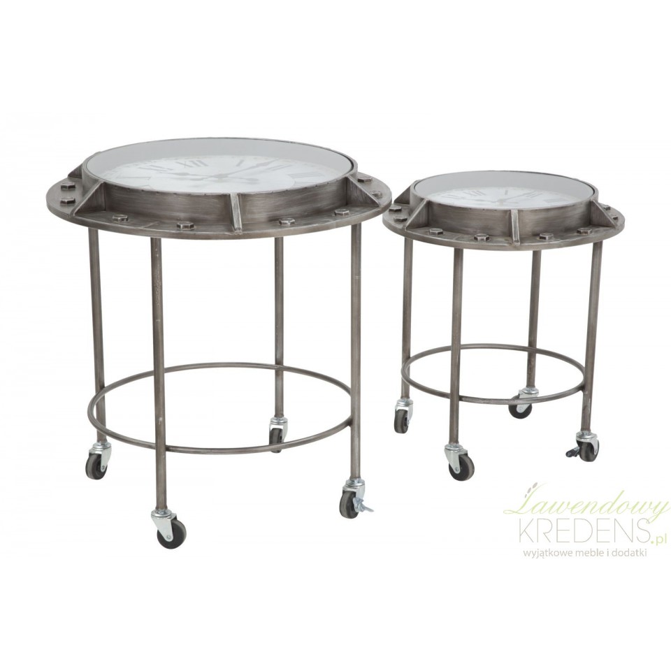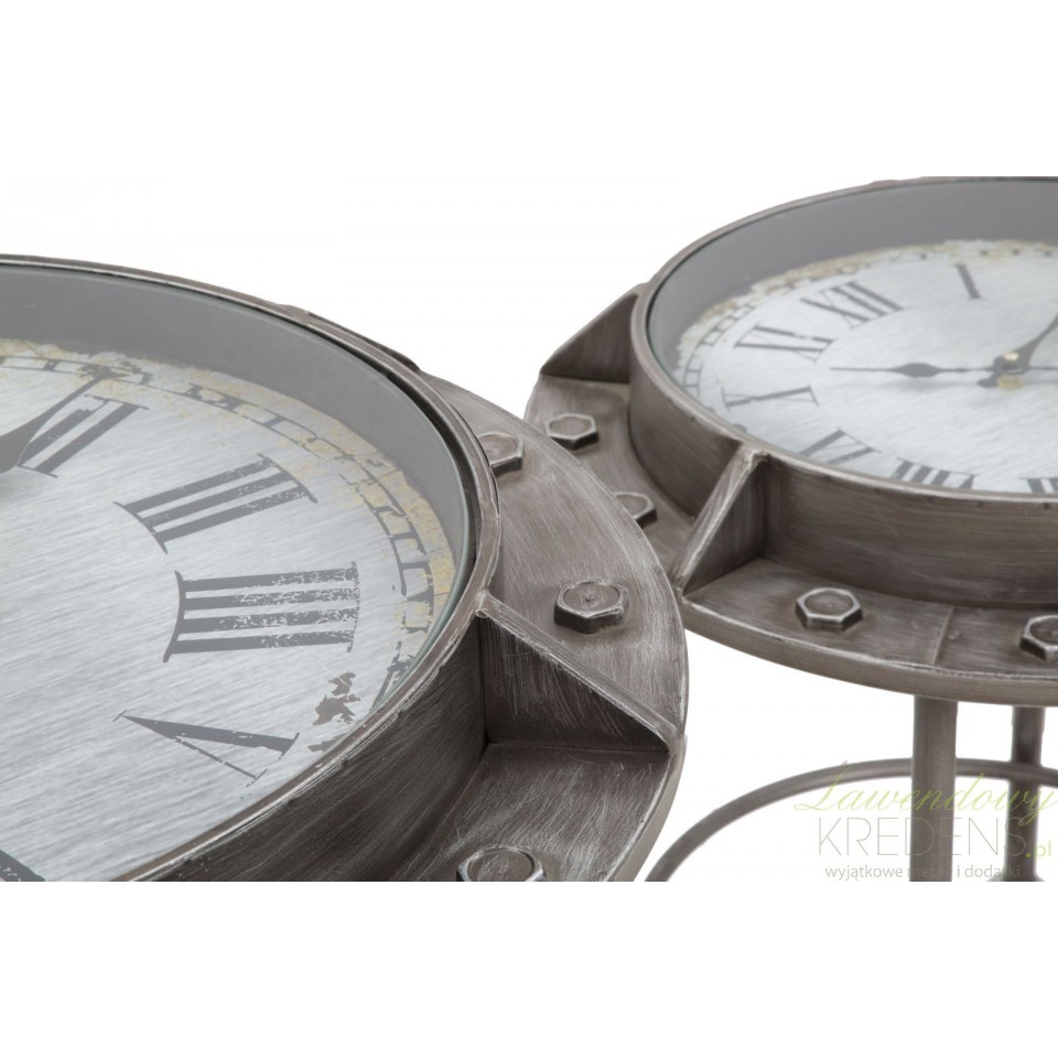 Okrągłe stoliki industrialne z zegarami mają nogi zrobione z metalu i blaty okryte taflą szkła. Komplet dwóch stolików z kolekcji Bolt ma jedną wspólną cechę: oba meble zamiast tradycyjnych blatów wyposażone zostały w zegary. Wielofunkcyjne meble w stylu industrialnym to specjalność marki Mauro Ferretti. Pozwól nam się rozpieszczać i zrób zakupy w naszym sklepie, tylko u nas znajdziesz wszystko czego potrzebujesz do urządzenia funkcjonalnych i modnych wnętrz.