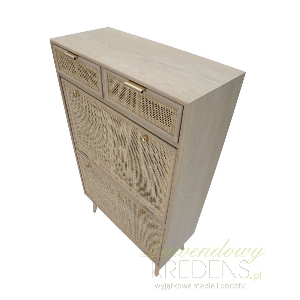 Szafka w stylu skandynawskim przeznaczona do przechowywania obuwia, ustawiona przy wejściu do Twojego domu zapewni komfort nie tylko domownikom ale wszystkim gościom, którzy przekroczą próg Twoich drzwi. Szafka na buty z trzema segmentami pomieści kapcie, letnie sandały i zimowe kozaki, chroniąc je przed kurzem i rozrabiającym psem. Wykonana z drewna szafka skandynawska ma drzwi wykonane z drobnej siateczki. Meble skandynawskie od Mauro Ferretti to meble ponadczasowe, pełne wdzięku i stylistycznie jednolite.