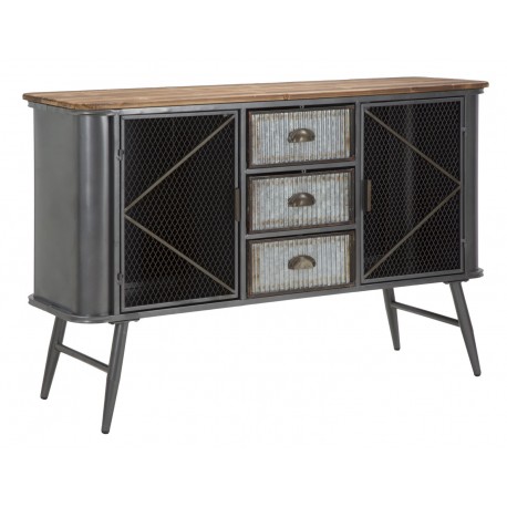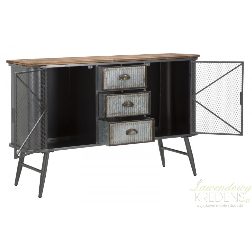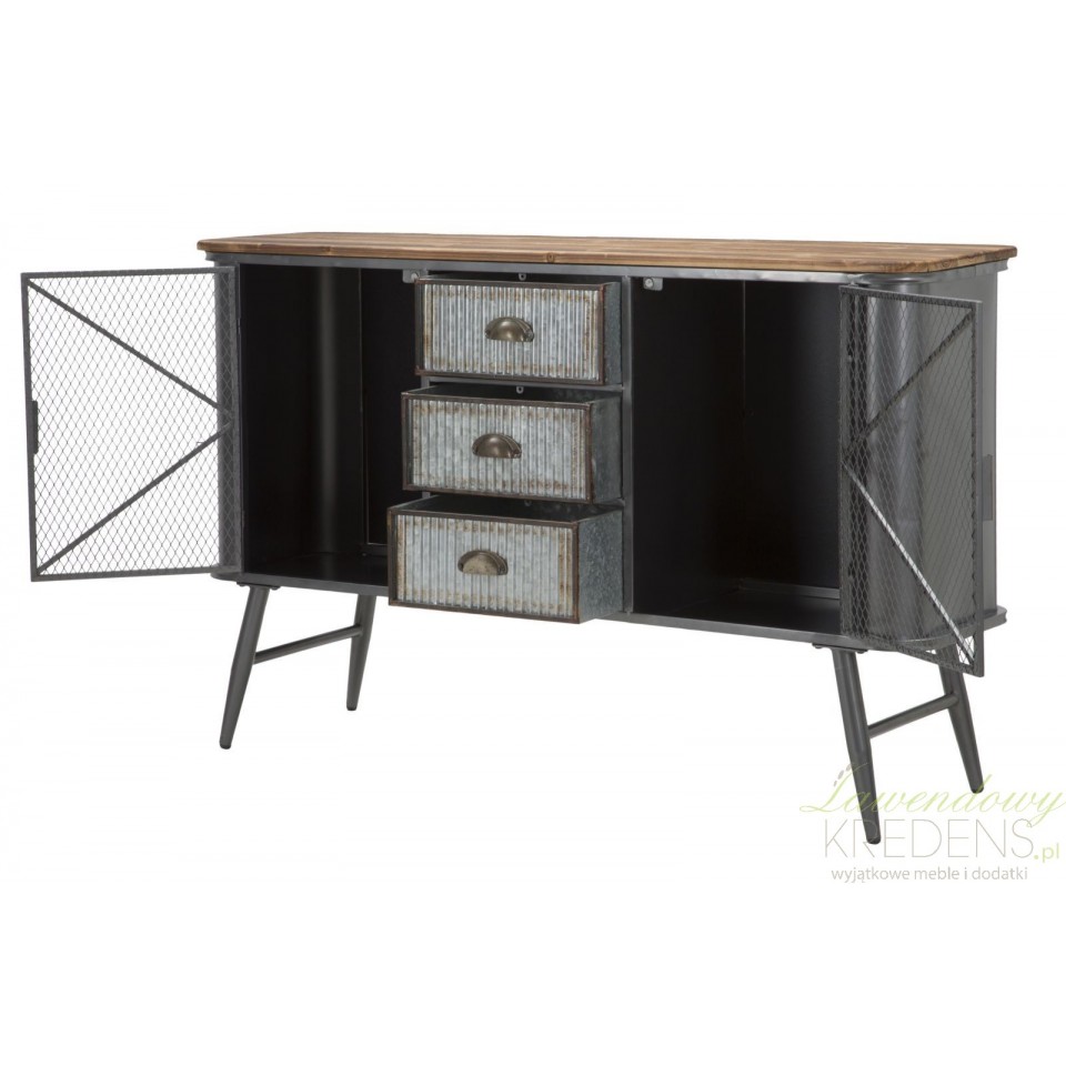 Styl industrialny to aktualnie najpopularniejszy trend w wyposażeniu wnętrz. Trudno nie dać się zachwycić zatem pięknej i praktycznej komodzie z drewna jodłowego i metalu. To komoda w stylu industrialnym z kolekcji Illinois od producenta Mauro Ferretti. Połączenie surowego metalu z postarzeniami i drewna o widocznym usłojeniu dodaje komodzie charakteru. Komoda industrialna zawiera trzy szufladki i dwie szafki z ażurowymi drzwiczkami.