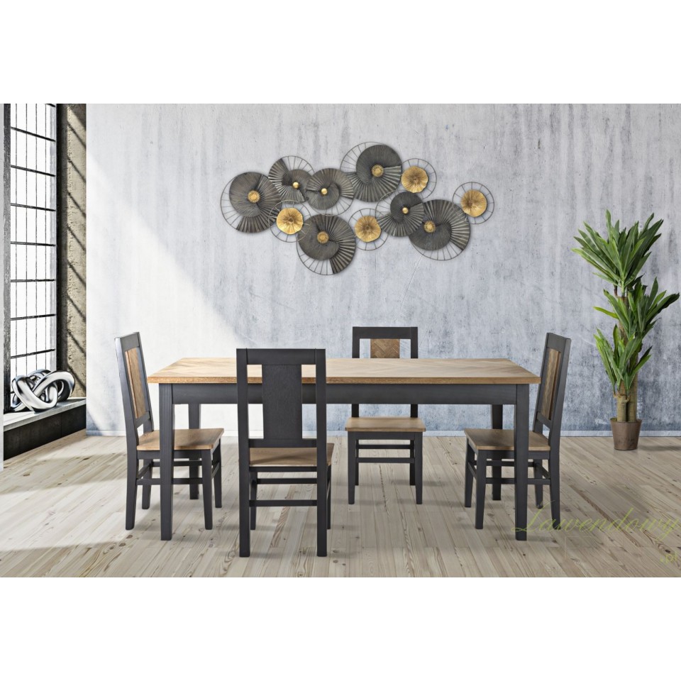 Duży i niezawodny stół w stylu skandynawskim, przy którym usiądzie cała rodzina, to niezastąpiony mebel w każdej kuchni i jadalni. Wykonany z drewna, stół ten jest solidny oraz łatwy w utrzymaniu czystości. Brązowy blat pięknie komponuje się z czarnymi nogami, które są proste i zapewniają stabilne oparcie dla mebla. To najlepszy wybór do pomieszczeń utrzymanych w stylu skandynawskim, industrialnym i prowansalskim.