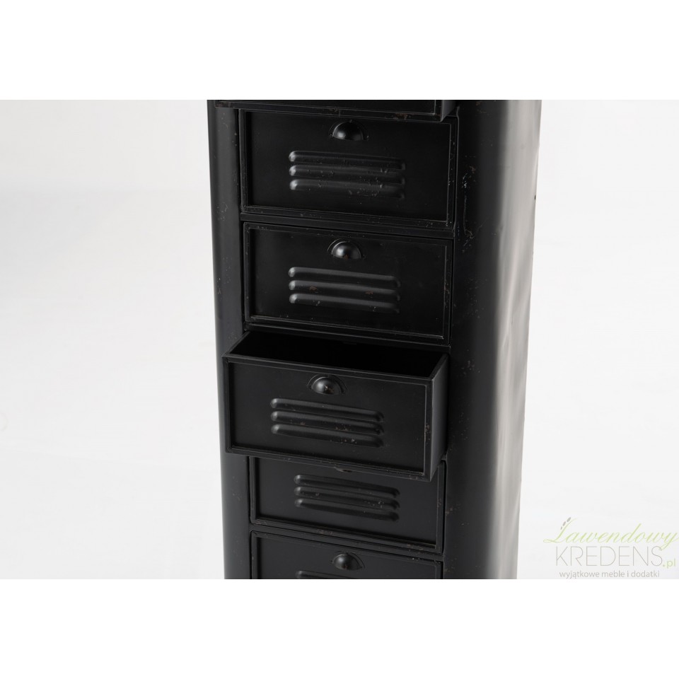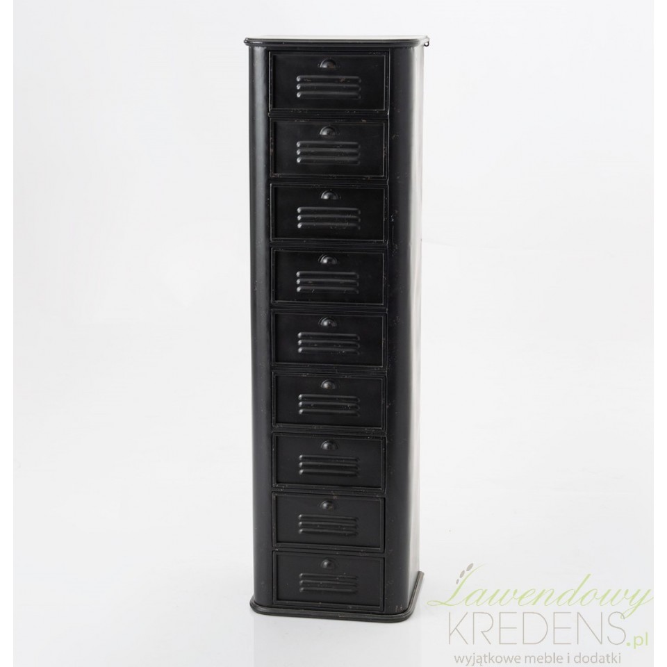 Wysoka na blisko półtora metra, metalowa szafka zrobiona jest w całości z metalu. Jeśli urządzasz industrialną przestrzeń (niezależnie czy to dom czy biuro) szafki w stylu industrialnym to najlepszy wybór. Liczne szuflady z charakterystycznymi okienkami zabudowanymi żaluzjami są doskonałym miejscem na dokumenty, pamiątki lub ubrania. Meble industrialne to spełnienie Twoich oczekiwań o funckjonalnym wnętrzu.