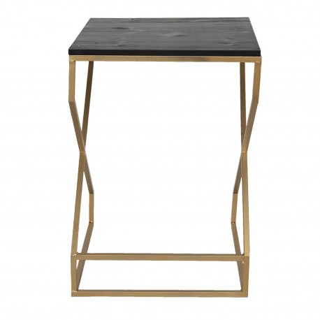 Jeżeli cenisz proste meble, które jednocześnie są stylowe, to metalowy stolik z drewnianym blatem w czarnym kolorze spełni Twoje oczekiwania. Możesz wykorzystać go jako stolik boczny przy sofie w salonie lub jako stolik nocny. Dzięki prostej konstrukcji, którą stanowią nogi w złotym kolorze i kwadratowy bat z drewna, ten mebel może penić wiele funckji. Sam się przekonaj i zamów go już teraz!