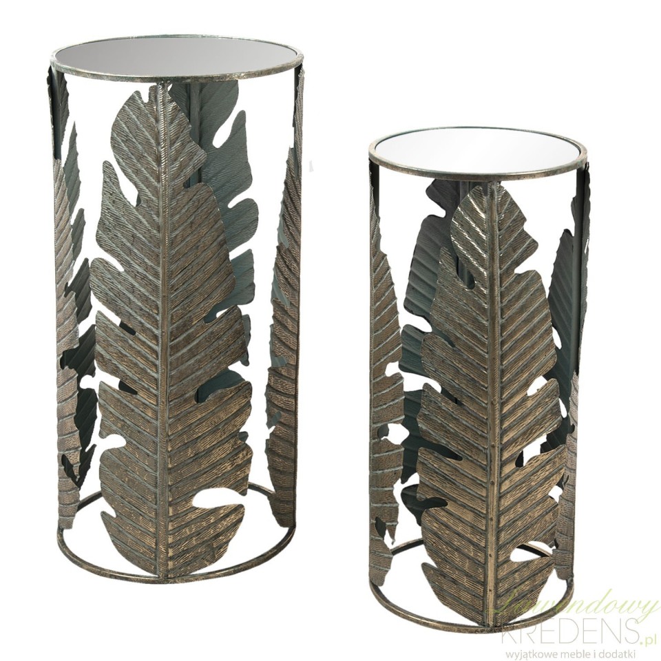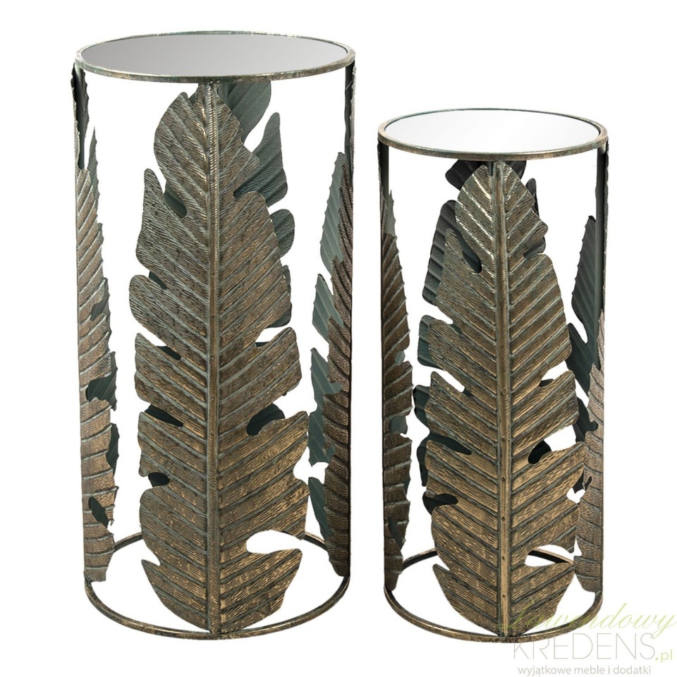 Te wyjątkowe stoliki z metalowymi liśćmi nadadzą indywidualny charakter każdemu wnętrzu. W zestawie otrzymasz dwa stoliki różniące się wysokością.