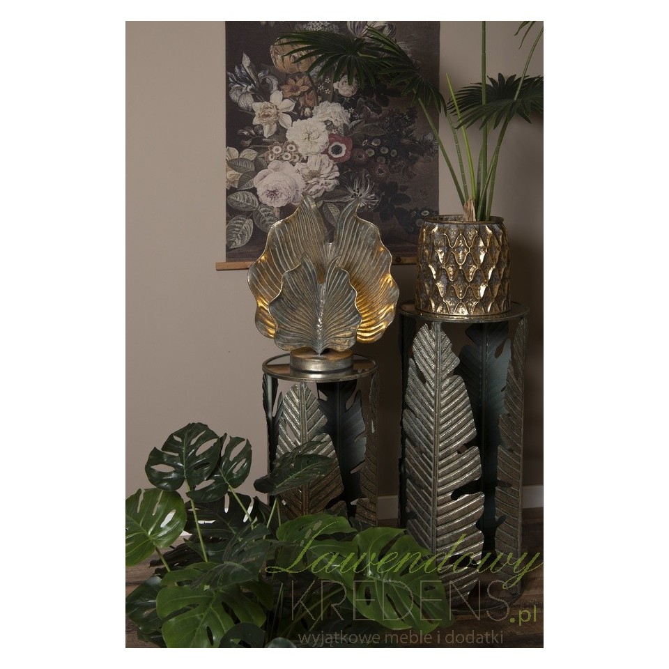 Projektując metalowe meble, marka Clayre & Eef stosuje różne, ciekawe wykończenia, w tym lustrzane i antyczne oraz postarzane. Stoliki z metalowymi liśćmi wmontowanymi w podstawę mają okrągły blat z lustra. Metalowa podstawa w kolorze antycznego mosiądzu patynowanego pełni dwie funkcje: jest ozdobą mebla i jego stabilną podporą. Dzięki pomysłowości holenderskiej marki otrzymujesz meble o wysokiej jakości w atrakcyjnej cenie!