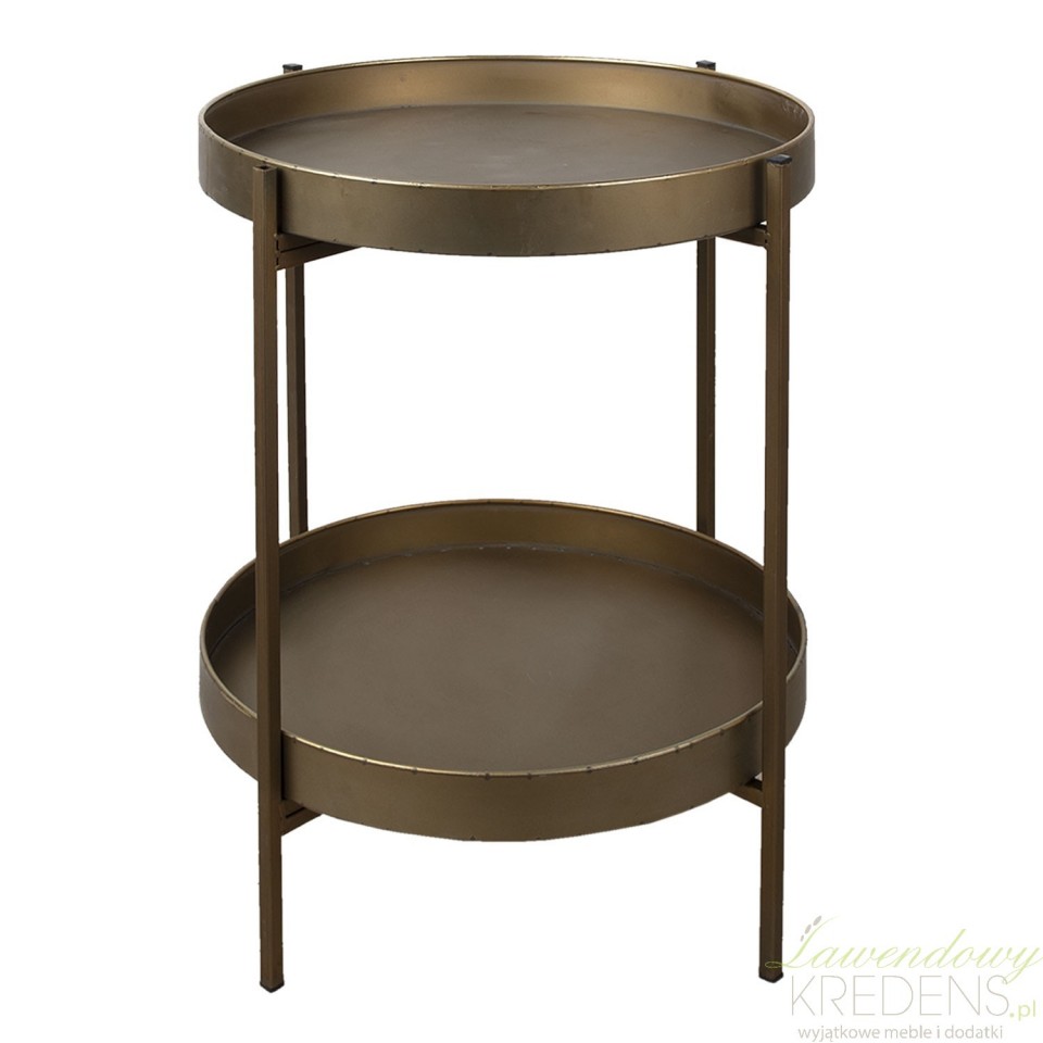 Antyczny, metalowy stolik od Clayre & Eef z dwoma półkami perfekcyjnie łączy design z funkcjonalnością. Dzięki niemu efektownie powitasz gości już w przedpokoju, lub znajdziesz odpowiednie miejsce na ozdoby w salonie. Niezależnie od tego, czy metalowe stoliki są schowane za sofą, czy ustawione w widocznym miejscu tuż przy wejściu do salonu, są idealnym tłem do stworzenia interesującej ekspozycji. Metalowe meble nie bez powodu cieszą się tak dużą popularnością – sprawdzają się w każdej aranżacji!