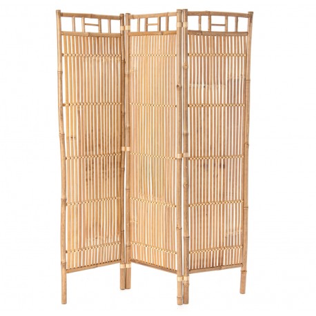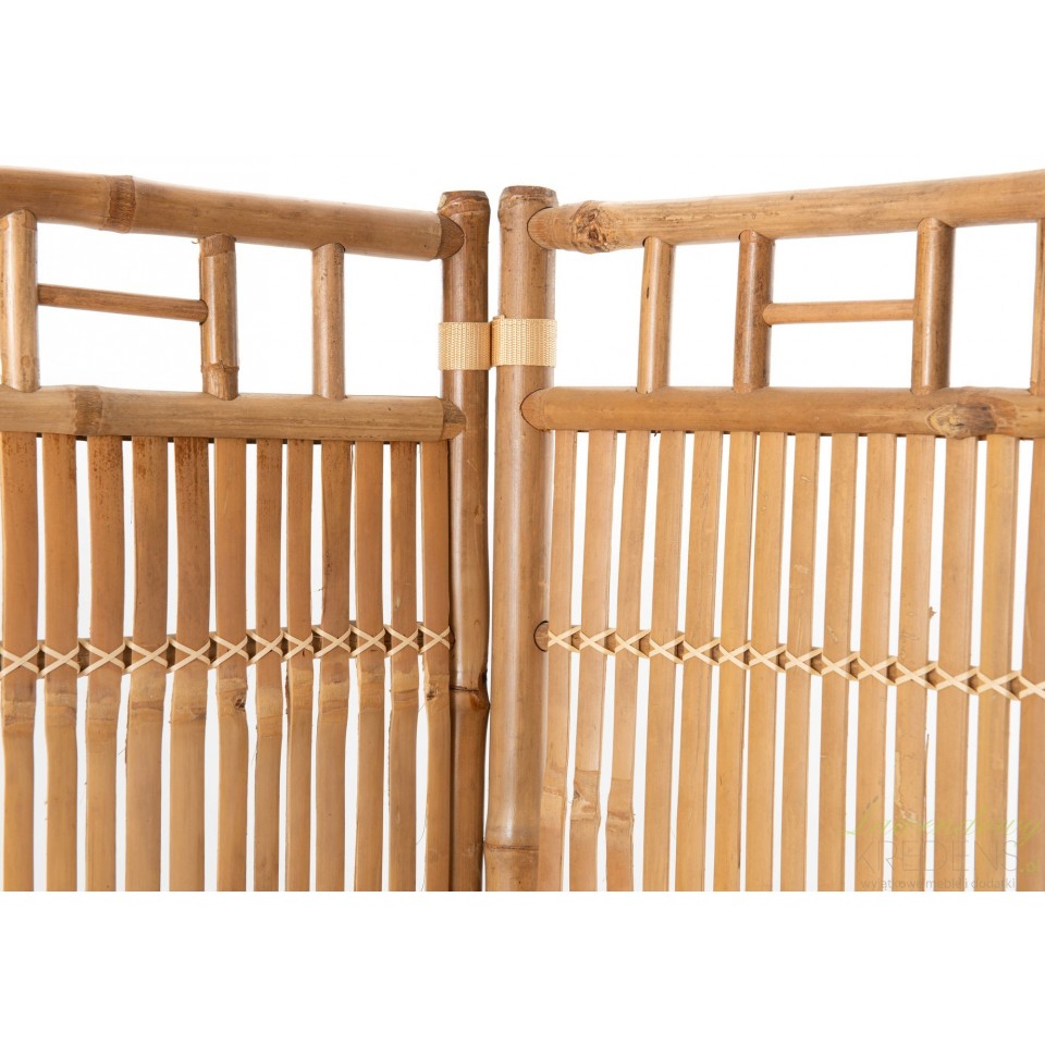 Wysoki parawan bambusowy w jasnobrązowym kolorze, dzięki trwałym zawiasom jest łatwy do złożenia i do przechowywania gdy nie jest używany.