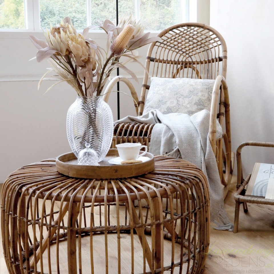 Dodaj odrobinę naturalnego uroku do swojego domu, wybierając okrągły, rattanowy stolik kawowy Chic Antique.