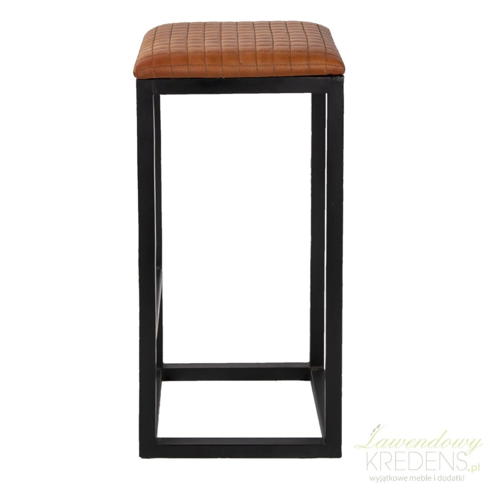 Ten wysoki, skórzany stołek barowy na metalowych nogach to idealny mebel do industrialnej kuchni, w której potrzebujesz wygodnego siedziska do wyspy kuchennej.