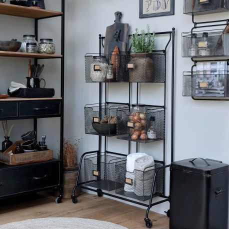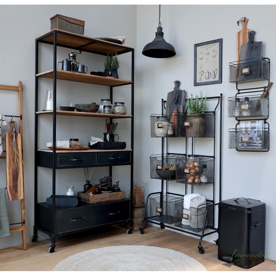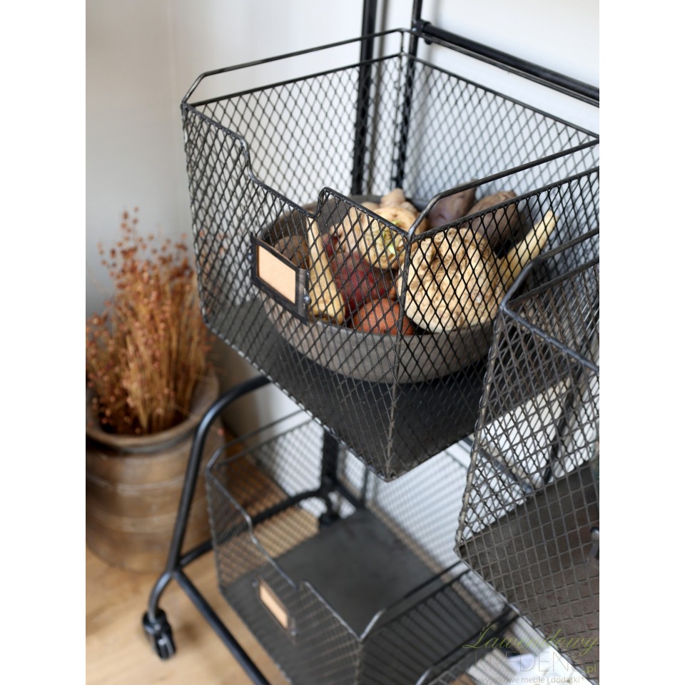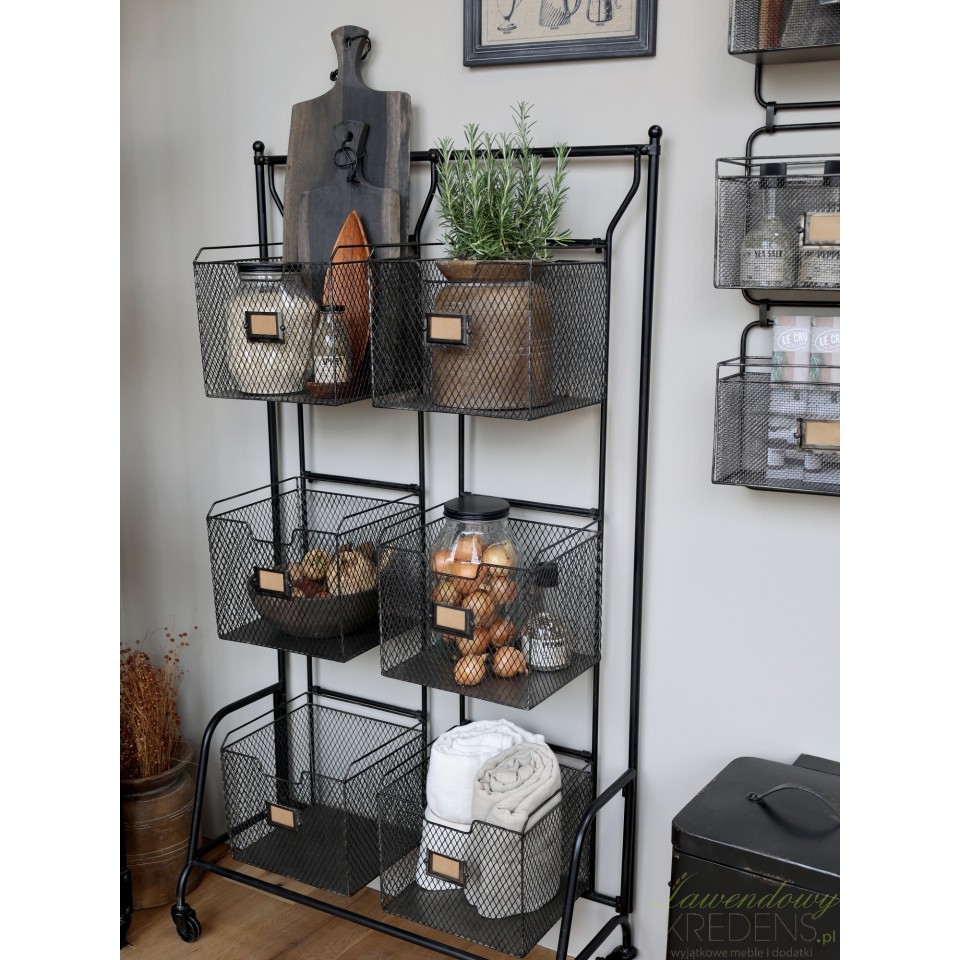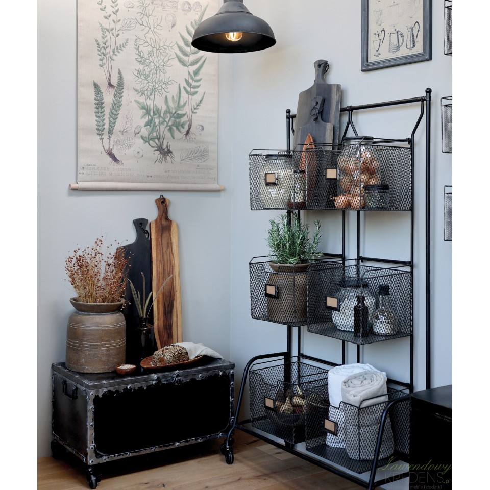 Regał industrialny z koszami Chic Antique zawiera trzy poziomy podwójnych koszy, które są idealne do przechowywania produktów w kuchni i nie tylko. Czarny regał metalowy jest wystarczająco pojemny, aby pomieścić różnorodny asortyment, a co więcej - świetnie nadaje się do walki z nieporządkiem. Napełnij każdy z koszy smacznymi jabłkami, pomarańczami, bananami, ziemniakami, cebulą i nie tylko! Regały w stylu industrialnym na kółkach są do tego stworzone! Takie meble w stylu industrialnym to specjalność duńskiej marki – przekonaj się o tym i odwiedź nasz sklep online już teraz!