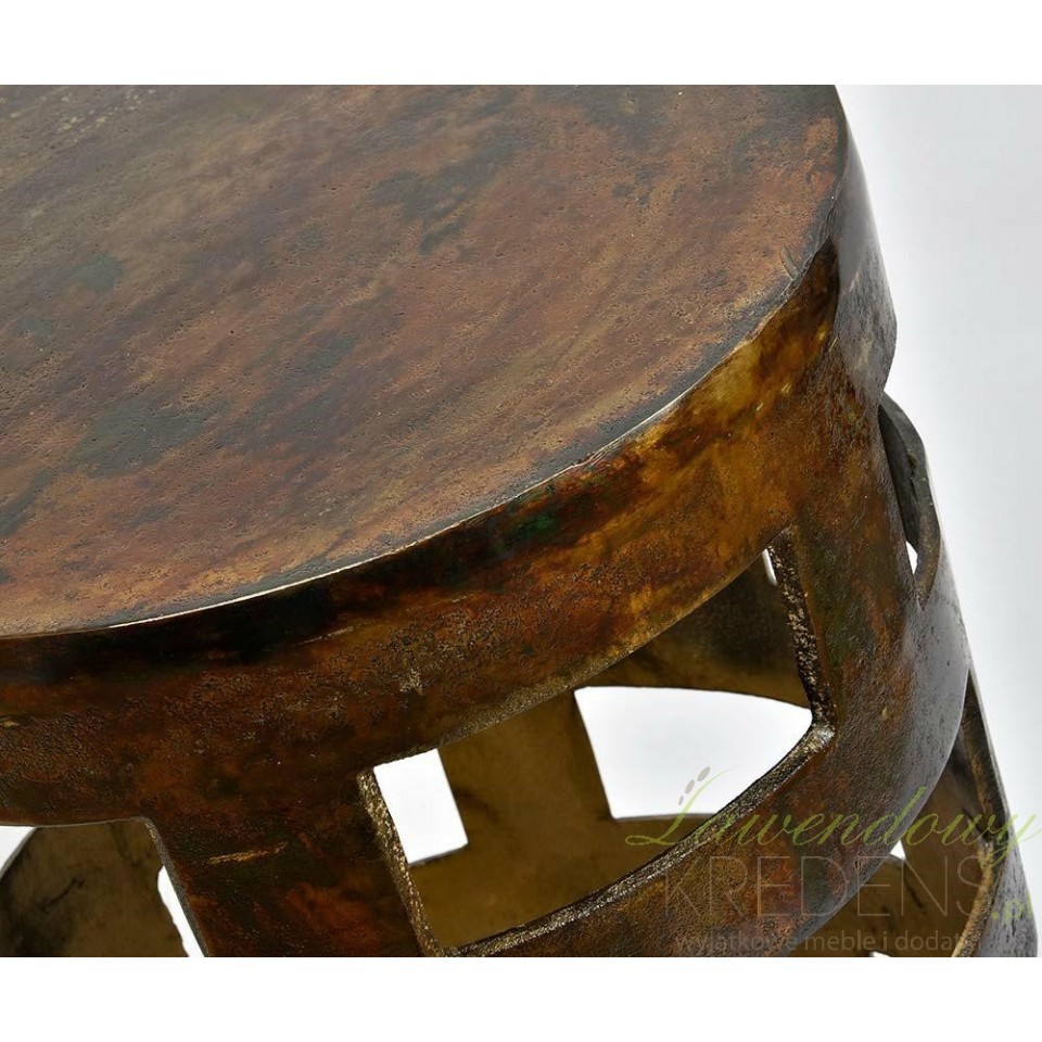 Antyczne rzemiosło i postarzany metal z śladami rdzy sprawiają, że stolik Belldeco Barok Old wyróżnia się na tle innych mebli.