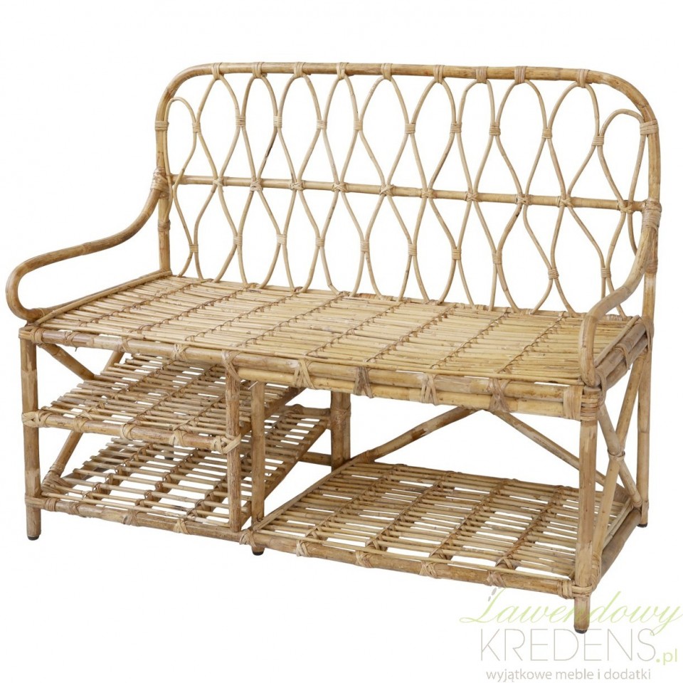 Rattanowa ławka Chic Antique z półkami do przechowywania to doskonałe miejsce na buty w przedpokoju i nie tylko!