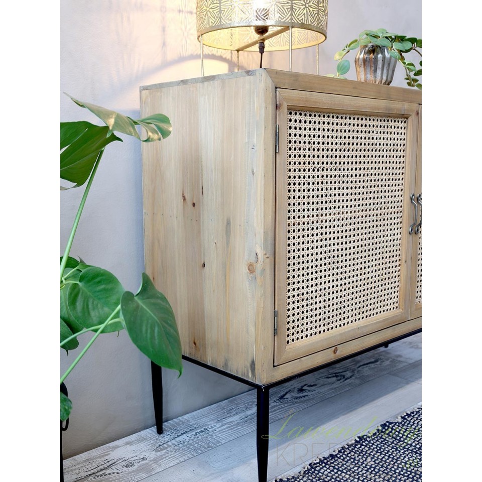 Komoda boho z rattanowymi frontami ma minimalistyczną formę z dodatkiem balijskiego stylu. Ta pojemna szafka o gładkiej sylwetce i rattanowych detalach to idealne połączenie modnego designu i wszechstronnej użyteczności. Oferuje dużo miejsca do przechowywania, a dodatkowo może pomieścić mnóstwo dekoracji na obszernym blacie. Komoda Chic Antique oparta jest na czterech nóżkach metalowych, które zapewniają stabilność na lata. Meble w stylu boho doskonale pasują do współczesnego wystroju wielu wnętrz.