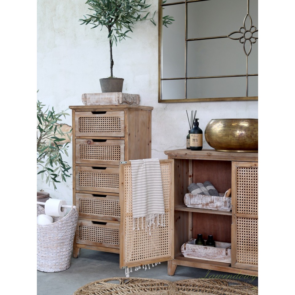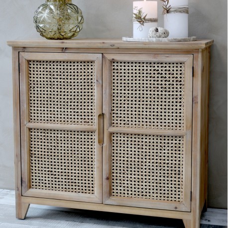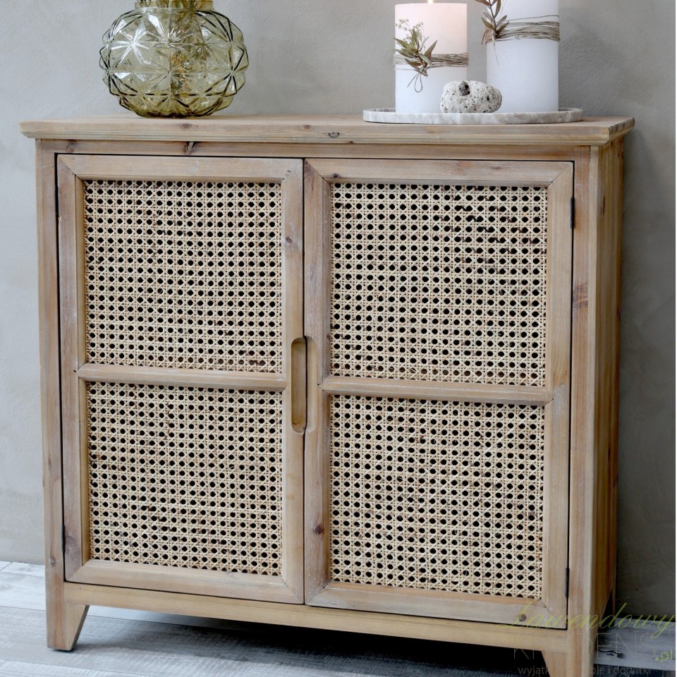 Komoda boho Chic Antique z rattanowymi drzwiami to jeden ze sposobów na uatrakcyjnienie wyglądu pomieszczeń, wkomponowanie do wnętrza zapachu drewna i balijskiego klimatu.