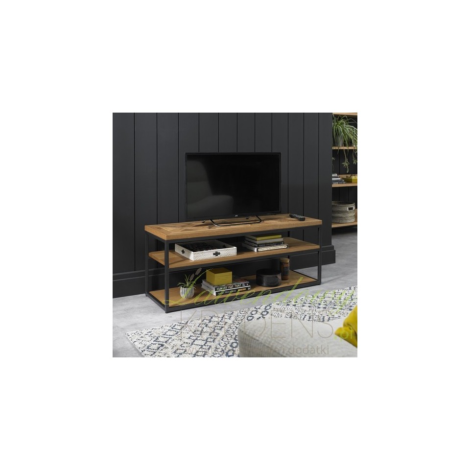 Ten kompaktowy stolik RTV Livin Hill Indus z dwiema półkami stanowi idealne miejsce na telewizor w salonie.