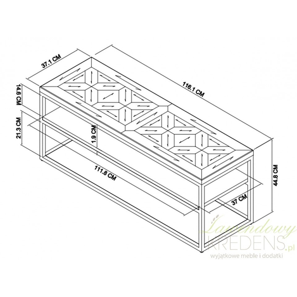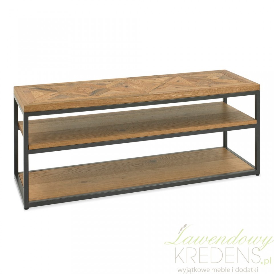 Stolik RTV Livin Hill Indus z drewna mierzy 45 cm wysokości i 116 cm szerokości. Jego metalowa konstrukcja wykończona farbą w kolorze czarnym mieści wewnątrz dwie półki z drewna, które są idealne na dokumenty lub gazety, a co najważniejsze - pomieszczą piloty i odtwarzacze płyt. Gdy przestrzeń jest ograniczona, ważne jest, aby połączyć piękno i funkcjonalność w meblu, a komody w stylu industrialnym to wszystko zapewniają. Stoliki RTV będą wspaniałym dodatkiem do każdego salonu, ponieważ wyglądają pięknie, mają dużo miejsca do przechowywania i odpowiednią wysokość do ustawienia telewizora.