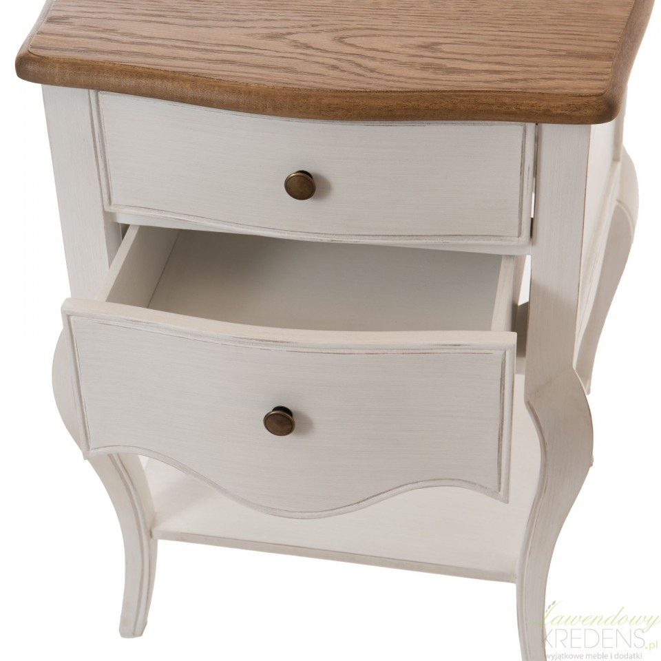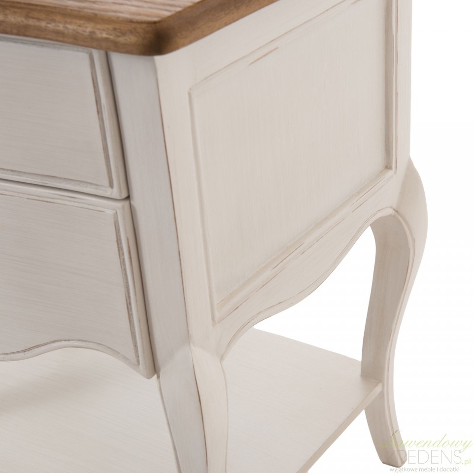 Łącząc w sobie jakość, wyrafinowanie i elegancję, ten stolik nocny prowansalski Luberti uwodzi fikuśnym kształtem i jasnym kolorem z dodatkiem ciepłego brązu.
