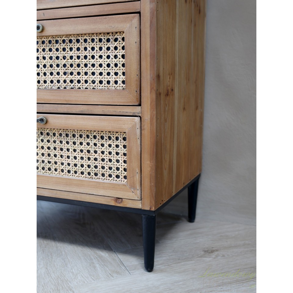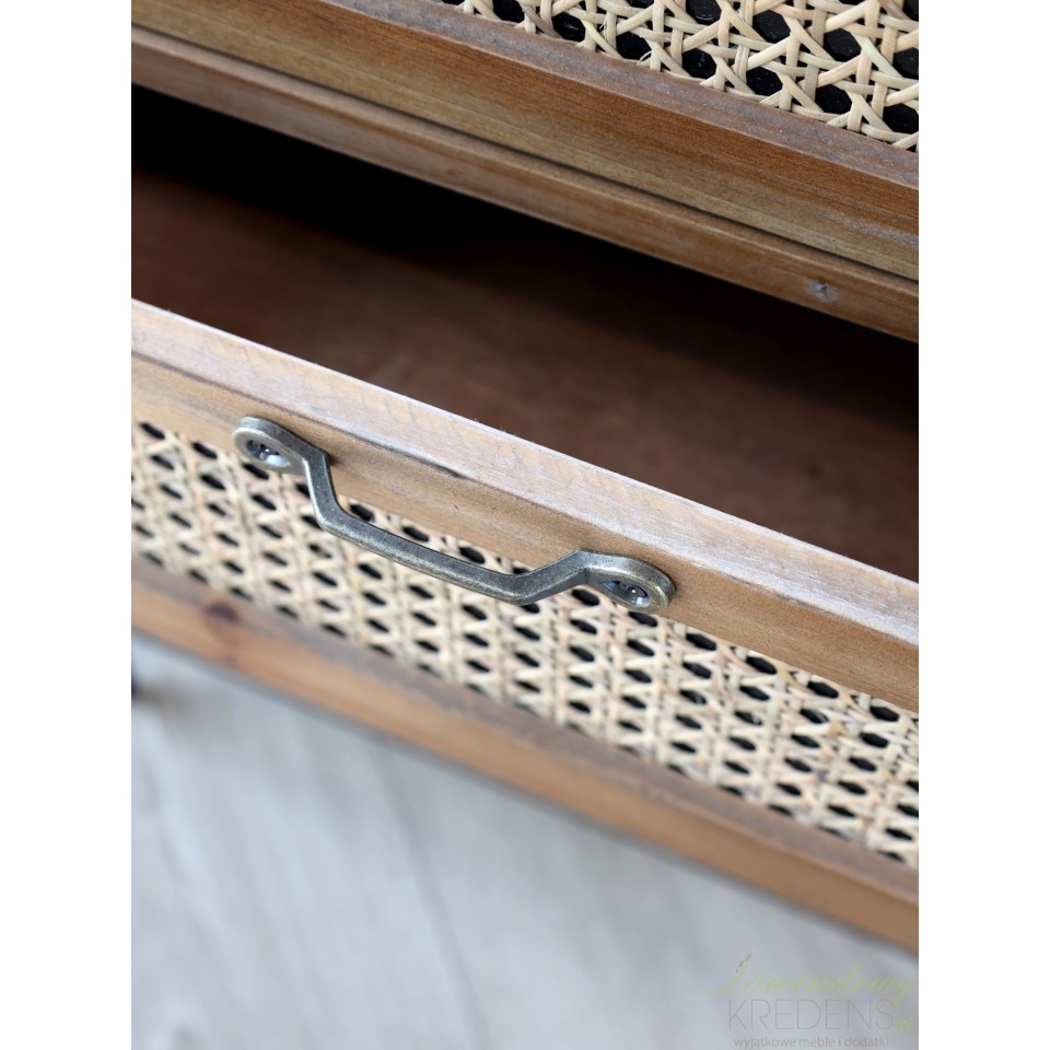 Ta wspaniała komoda boho Chic Antique z rattanowymi frontami jest idealnym meblem dla tych, którzy chcą, aby w ich domu drewno było na pierwszym planie.