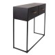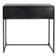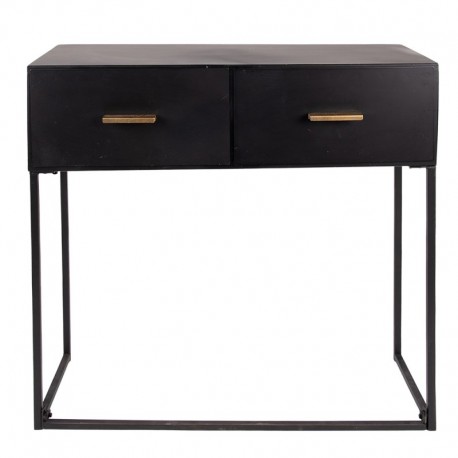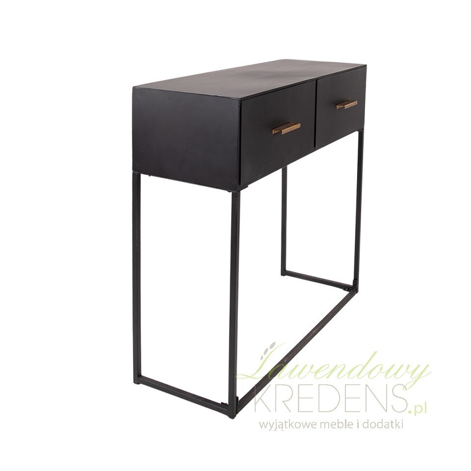 Czarna, metalowa konsola w stylu skandynawskim wykonana jest z wysokiej jakości materiału, wyposażono ją w dwie szuflady z wąskimi uchwytami.