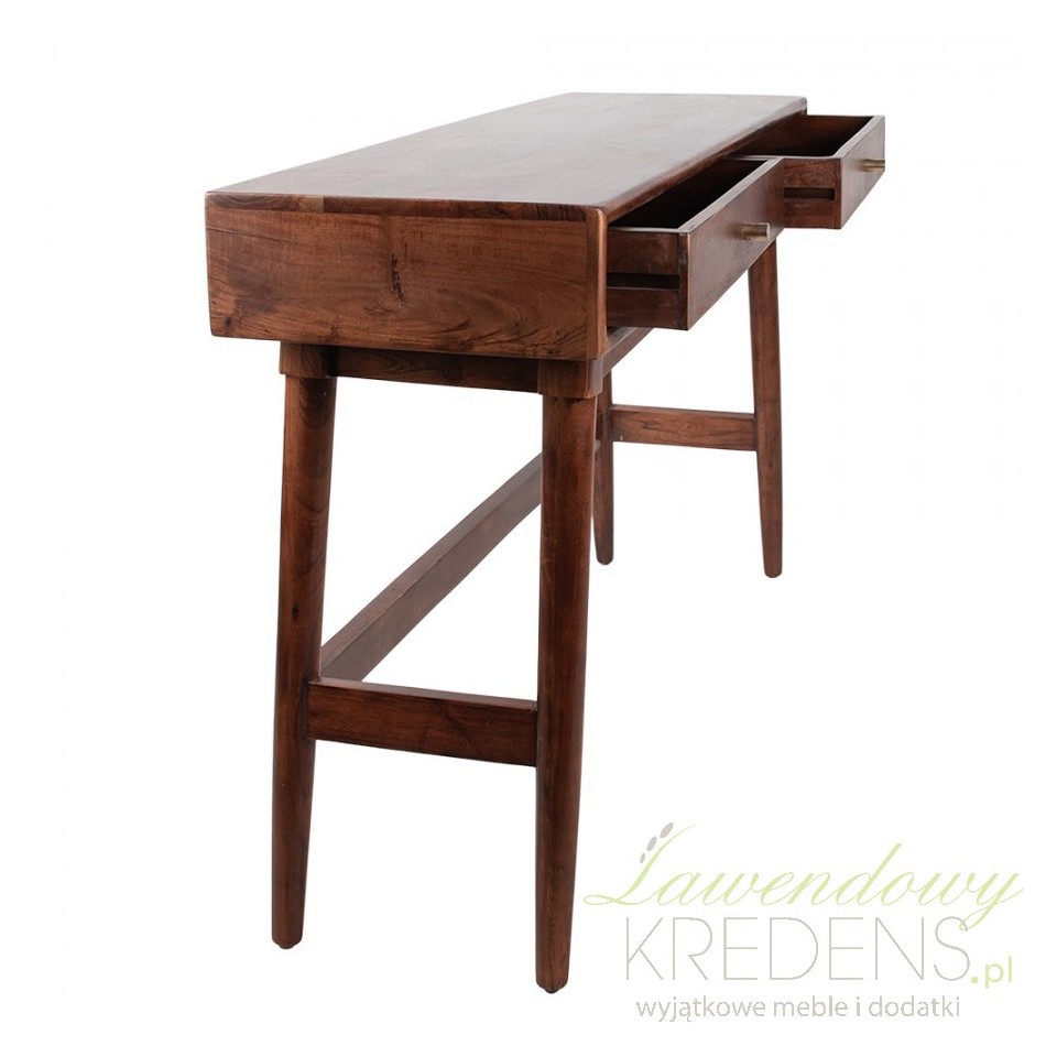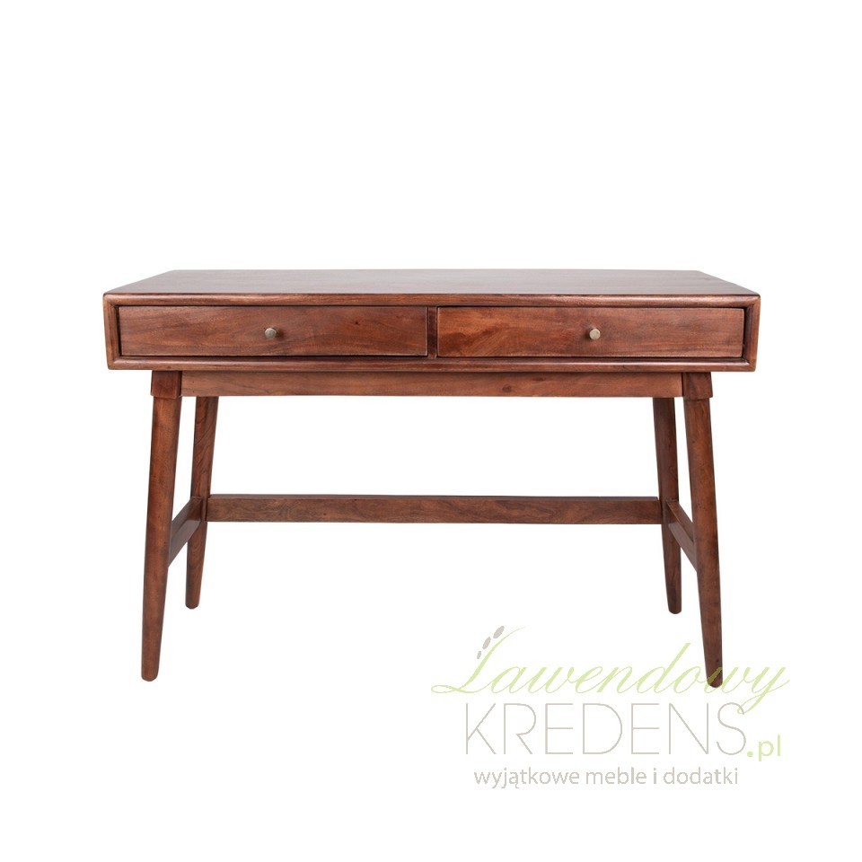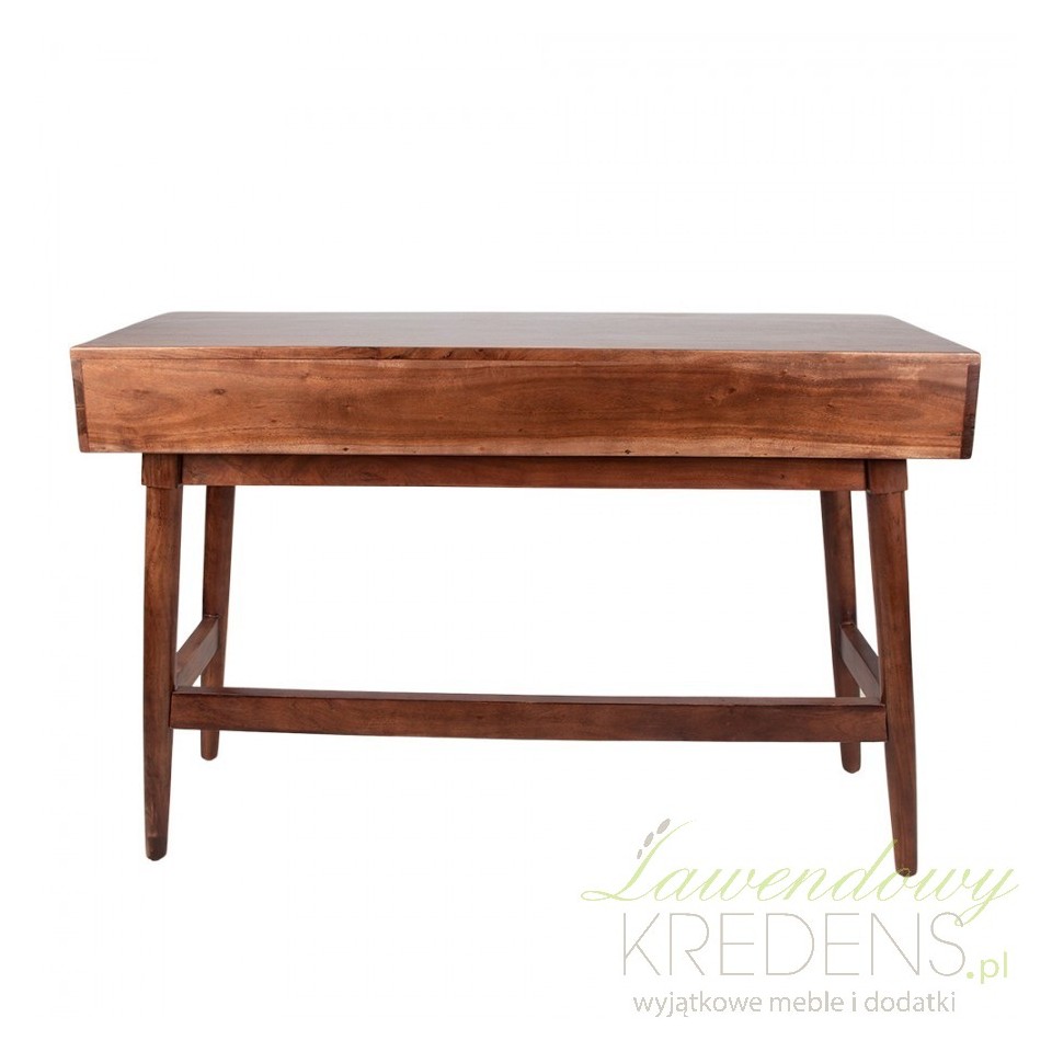 Posiadające bardzo prostą konstrukcję - to biurko w stylu retro brązowe ma dwie szuflady z dużą ilością miejsca do przechowywania. Posiada również cztery proste nogi, które zapewniają stabilne podparcie, jednocześnie pozwalając na umieszczenie pod blatem krzesła w celu wygodnego siedzenia podczas użytkowania mebla. Nasze meble w stylu retro, które sygnowane są logo marki Clayre & Eef to gwarancja jakości i zadowolenia przez długie lata.