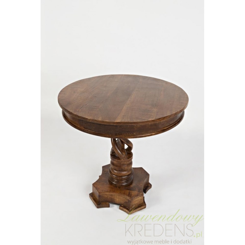 Drewniany Stolik Avola Livin Hill Mango wykonany został z drewna mango. Ręcznie rzeźbiona noga oraz postarzenia w postaci wgłębień i drobnych rys sprawiają, że kazdy model jest niepowtarzalny i unikatowy. Na blacie stolika możesz ustawić ulubione kwiaty, świeczniki lub inne dekoracje, które będą się prezentować niczym przysłowiowa wisienka na torcie. Jeśli szukasz dodatku, który zachwyci swoim wyglądem to drewniany stolik Avola Livin Hill mango jest stworzony właśnie dla Ciebie.