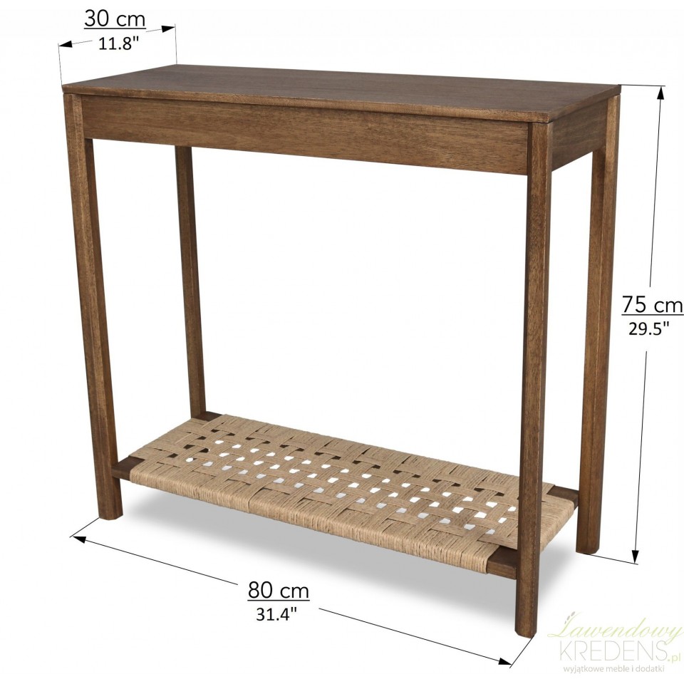 Pięknie wykończona, konsola rustykalna Daphi z półką emanuje autentycznym, francuskim wdziękiem. Konsola posiada bardzo odporną, wytrzymałą konstrukcję, gwarantującą stabilność i trwałość. Idealnie nadaje się do wyeksponowania ozdób, kwiatów czy cennych przedmiotów, które chcesz pokazać lub mieć zawsze w zasięgu wzroku. Praktyczna półka pleciona ze sznurka to dodatkowa przestrzeń do przechowywania. Niech nasza rustykalna konsola stanie się centralnym punktem Twojej aranżacji, dodając jej ciepła i sielskiej atmosfery. Udekoruj ją lampami, doniczkami czy rodzinnymi fotografiami, tworząc niepowtarzalne miejsce pełne nostalgii i piękna.
