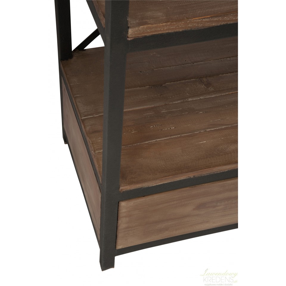 Regał industrialny Rustica J-Line to doskonałe połączenie funkcjonalności i stylowego designu, które sprawdzi się zarówno w przestrzeniach mieszkalnych, jak i użytkowych. Prosta, metalowa konstrukcja w głębokim odcieniu czerni nadaje mu surowego, loftowego charakteru, a trzy drewniane półki w naturalnym wykończeniu wprowadzają ciepło i przytulność. Na dole regału znajdują się dwie pojemne szuflady, które zostały wyposażone w wygodne wycięcia, ułatwiające codzienne użytkowanie.