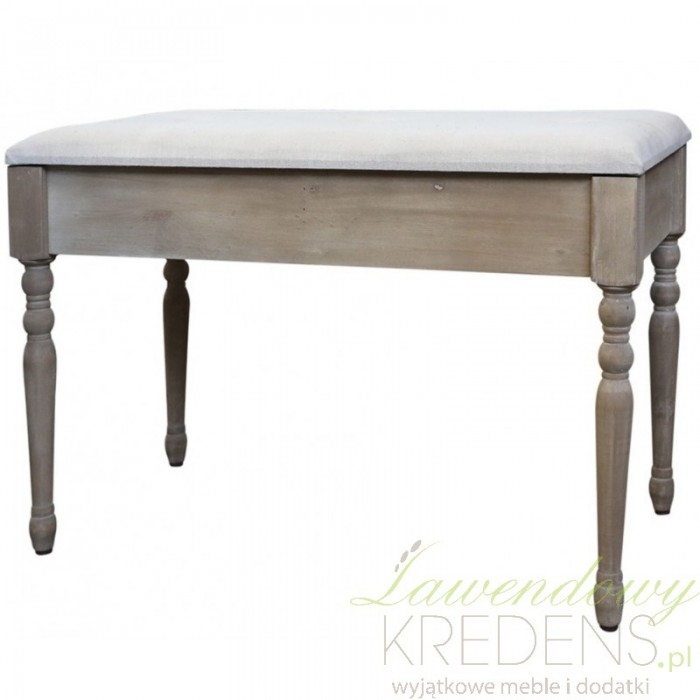 Ława tapicerowana od Chic Antique ma szarobrązowy kolor nóg i jasnobeżowe siedzisko. To mebel będący propozycją do przedpokoju oraz do salonu, w którym spełni świetnie swoje dekoracyjne funckje. Ława od Chic Antique z prostymi i uroczo rzeźbionymi nogami to dobra wiadomość dla wszystkich, którzy chętnie zamienią niepraktyczne pufy na jeden, solidny mebel. Polecamy meble prowansalskie do wnętrz skandynawskich i francuskich.