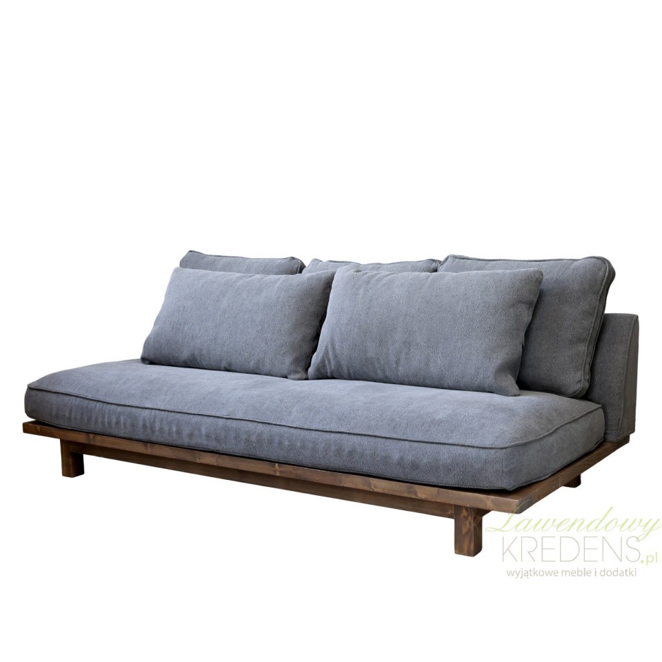 Ciemne i ciepłe drewno oraz oszałamiająca, surowa ciemnoszara tkanina pięknie się uzupełniają. Oprócz pięknego wyglądu, sofa oferuje wysoki komfort i wygodę dzięki dużym poduchom i pięciu miękkim poduszkom, które możesz ułożyć tak, jak lubisz.