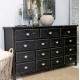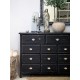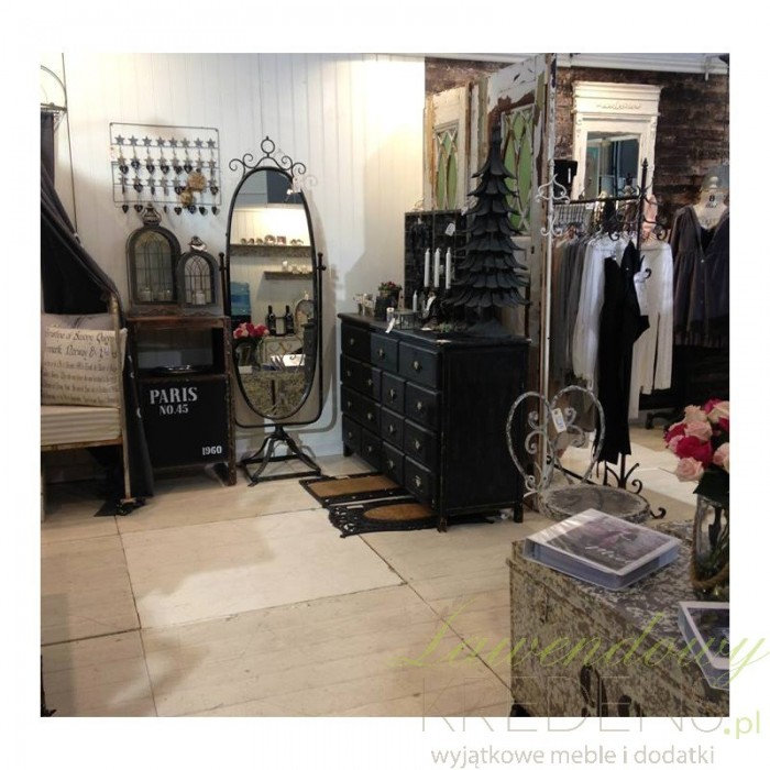 Opowiadająca niezwykłą historię stylu, czarna komoda w stylu prowansalskim, która służyć Ci będzie swoimi licznymi szufladami oraz dużym, prostokątnym blatem. Postarzenia na jej powierzchni, zwłaszcza w okolicach krawędzi, dodają jej optycznie lat i wprowadzają aurę będącą cechą charakterystyczną marki Chic Antique!